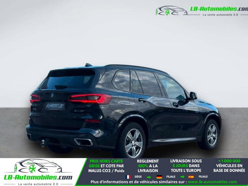 Référence : 1190606 Vos Avantages chez LB-AUTOMOBILES.com / Prix affiché TTC Livré hors carte grise / Livraison sous 10 jours dans toute la France hors 31 / Pas d?avance de frais paiement du véhicule 100% à la livraison par virement. BMW X5 Neuf remisée, BMW X5 Occasion Toulouse Beaupuy 31850, BMW X5 Véhicule sorti de réseau collaborateur, BMW X5 import, BMW X5 importateur, BMW X5 Livraison possible dans toute la France sous 5 jours, BMW X5, BMW X5 Location Option Achat, BMW X5 LLD, BMW X5 Longue Durée, BMW X5 TVA récupérable. Possibilité d'extension de garantie 12, 24,36 mois, Pour tout autres voitures import neufs ou occasions collaborateur fortement remisée, Mandataire Audi, Mandataire BMW, Mandataire Volkswagen, Mandataire Mercedes, Mandataire Peugeot Espagne, Mandataire Renault Espagne, Porsche import, Mandataire Citroën Espagne, Mandataire Seat Espagne, n'hésitez pas à nous contacter. « Sous réserve de vente préalable et erreur de saisie » Principaux équipements : - 4x4 - ABS - Accoudoir - Affichage tête haute - Apple CarPlay - Assistance au freinage d'urgence - Assistance de démarrage en côte - Assistant d'angle mort - Attache remorque fixe - Avertisseur de franchissement de ligne - Bluetooth - Capteur de lumière - Capteur de pluie - Chargement par induction pour smartphones - Commande vocale - Contrôle de la pression des pneus - Direction assistée - Éclairage d'ambiance - Écran tactile - ESP - Fermeture centralisée - Feux de jour LED - Galerie de toit - Garantie - GPS - Grille de protection pour coffre - Hayon électrique - Isofix - Jantes alliage - Ordinateur de bord - Pack sport - Phares LED - Pneus été - Port USB - Réglage électrique des sièges - Régulateur de vitesse - Rétroviseur extérieur électrique - Rétroviseur intérieur anti-éblouissement automatique - Sièges arrières chauffants électriques - Sièges chauffants - Sièges massants - Sièges sport - Suspension adaptative - Suspension pneumatique - Suspension sport - Système antipatinage - Système d'avertissement de la distance - Système de détection de la fatigue - Système de limitation de la vitesse - Système Stop & Start - Toit panoramique - Tuner/radio - Véhicule non-fumeur - Ventilation du siège - Vitres électriques - Volant en cuir - Volant multifonction