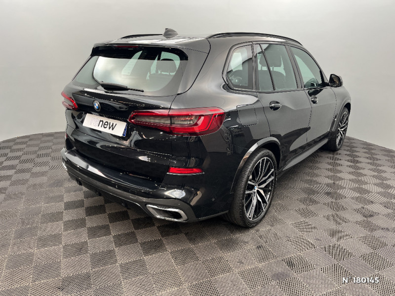 Soubassement AV et AR noir grainé / Système de manoeuvres entièrement automatiques "Park Assist" / Système de récuperation de l'énergie au freinage BMW Efficient Dynamics / Système haut-parleurs HiFi / Tapis de sol en velours / Technologie 4 roues motrices intelligente xDrive / Teinte de carrosserie unie (Alpinweiss) / Triangle de présignalisation avec kit de premiers secours / Tuner DAB / Vitres avec protection contre la chaleur et le soleil / 3ème feu stop / 5 sièges / Accoudoir dans la console centrale et dans les portes AV et AR / Airbags de tête pour la 1ère et la 2ème rangée / Alarme antivol / Appel d'Urgence Intelligent (durée de vie de la voiture) / Accoudoir central AR avec 2 portes boissons et un compartiment de rangement / Arches des roues noir grainé / Attention Assist: Signale la perte de vigilance du conducteur / Aumonières au dos des sièges AV / Autoradio BMW Professional 7 touches de favoris programmables et "Controller" iDrive avec touches de raccourci, Tuner RDS, info-route / Baguettes de seuil de porte avec l'inscription BMW à l'AV et à l'AR illuminées / BMW Gesture Command / BMW Live Cockpit Navigation Pro / Boîte de vitesses automatique Sport avec palettes au volant / Bouton de démarrage Start/Stop sans manipulation de la clé / Buses de lave-glace chauffantes / Ciel de pavillon "Anthrazit" / Clés radiocommandées à mémorisation automatique des réglages "Personal Profile" / Connectivité avancée sans fil avec recharge par induction / Désignation du modèle "X5" à gauche et "xDrive" à droite sur le hayon / Détecteur de pluie et allumage automatique des projecteurs / Eclairage d'ambiance / Ecrous de roues antivol / Entourage des vitres en aluminium satiné / Equipements Finition M Sport / Feux de stop dynamiques clignotants / Fonction d'arrêt et de redémarrage automatique du moteur BMW Efficient Dynamics / Freins à disques ventilés AV/AR / Freins M Sport Etriers de freins bleus avec désignation M / Grille de calandre chromée en une seule pièce / Hayon ouvrant en deux parties avec commande électrique de la partie supérieure / Hotspot Wi-Fi / Insert de côté en noir grainé / Inserts décoratifs en Aluminium Tetragon / Instrumentation avec 4 combinés ronds haute résolution 5,7" couleur / Kit de mobilité BMW / Kit de rangement / Kit éclairage / Lève-vitres AV/AR électriques avec commande par impulsion et sécurité enfants / Limiteur et régulateur de vitesse avec maintien de la vitesse en descente / Direction à assistance électrique Servotronic BMW Efficient Dynamics / Eclairage d'accueil / Mesure individuelle de pression des pneumatiques / Notice d'utilisation de la voiture intégrée et carnet d'entretien électronique avec BMW Service History / Pack Connected Pro / Pack Connected Pro / Poches de porte AV/AR (1 bouteille de 1,0 l peut être placée confortablement dans la poche de porte) / Prises 12V (2 dans la planche de bord/console centrale et 1 dans le compartiment à bagage) / Protection contre les impacts latéraux / Rails de toit Aluminium Line satiné / Rails de toit Shadow Line brillant / Rétroviseurs extérieurs couleur carrosserie à réglages électriques et dégivrants, miroir asphérique côté conducteur, rappels de clignotants intégrés / Rétroviseurs extérieurs rabattables électriquement, rétroviseurs intérieur et extérieur (côté conducteur) électrochromes / Sélecteur de mode de conduite - 3 modes : ECO PRO, Comfort, Sport / Sellerie Cuir "Vernasca" perforée / Services Après-vente connectés BMW Teleservices (durée de vie de la voiture) / Shadow Line brillant / Sièges Advanced pour conducteur et passager AV / Sièges AV électriques à mémoires conducteur / Sortie d'echappement double chromée
