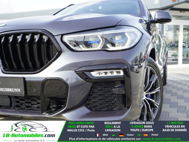 Référence : 1203748 Vos Avantages chez LB-AUTOMOBILES.com / Prix affiché TTC Livré hors carte grise / Livraison sous 10 jours dans toute la France hors 31 / Pas d?avance de frais paiement du véhicule 100% à la livraison par virement. BMW X6 Neuf remisée, BMW X6 Occasion Toulouse Beaupuy 31850, BMW X6 Véhicule sorti de réseau collaborateur, BMW X6 import, BMW X6 importateur, BMW X6 Livraison possible dans toute la France sous 5 jours, BMW X6, BMW X6 Location Option Achat, BMW X6 LLD, BMW X6 Longue Durée, BMW X6 TVA récupérable. Possibilité d'extension de garantie 12, 24,36 mois, Pour tout autres voitures import neufs ou occasions collaborateur fortement remisée, Mandataire Audi, Mandataire BMW, Mandataire Volkswagen, Mandataire Mercedes, Mandataire Peugeot Espagne, Mandataire Renault Espagne, Porsche import, Mandataire Citroën Espagne, Mandataire Seat Espagne, n'hésitez pas à nous contacter. « Sous réserve de vente préalable et erreur de saisie » Principaux équipements : - 4x4 - ABS - Accoudoir - Affichage tête haute - Android Auto - Antidémarrage - Apple CarPlay - Assistance au freinage d'urgence - Assistance de démarrage en côte - Assistant d'angle mort - Assistant de man?uvre avec remorque - Assistant feux de route - Attache remorque pivotante - Avertisseur de franchissement de ligne - Bluetooth - Boîte de vitesses robotisée - Capteur de lumière - Capteur de pluie - Carnet d'entretien - Chargement par induction pour smartphones - Chauffage auxiliaire - Cockpit numérique - Commande vocale - Contrôle de la pression des pneus - Diesel avec filtre à particules - Direction assistée - Éclairage adaptatif de virage - Éclairage d'ambiance - Éclairage route non éblouissant - Écran tactile - ESP - Fermeture centralisée - Feux de jour LED - Galerie de toit - Garantie - GPS - Grille de protection pour coffre - Hayon électrique - Isofix - Jantes alliage - Kit de réparation d'urgence des pneus - Kit mains libres - Ordinateur de bord - Package hiver - Pack sport - Phare antibrouillard - Phares laser - Pneus hiver - Port USB - Radio DAB - Réglage électrique des sièges - Réglage électrique des sièges avec fonction mémoire - Régulateur de vitesse adaptatif - Rétroviseur extérieur électrique - Rétroviseur intérieur anti-éblouissement automatique - Rétroviseurs extérieurs rabattables électriquement - Sièges chauffants - Sièges sport - Support lombaire - Suspension adaptative - Suspension sport - Système antipatinage - Système d'alarme - Système d'appel d'urgence - Système d'avertissement de la distance - Système de détection de la fatigue - Système de limitation de la vitesse - Système de reconnaissance des panneaux de signalisation - Système de sonorisation - Système Stop & Start - Toit panoramique - Tuner/radio - Véhicule non-fumeur - Verrouillage centralisé sans clé - Vitres électriques - Vitres teintées - Volant chauffant - Volant en cuir - Volant multifonction - WLAN / point d'accès Wi-Fi