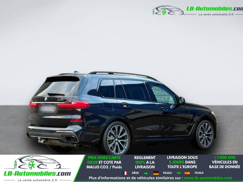 Référence : 1190627 Vos Avantages chez LB-AUTOMOBILES.com / Prix affiché TTC Livré hors carte grise / Livraison sous 10 jours dans toute la France hors 31 / Pas d?avance de frais paiement du véhicule 100% à la livraison par virement. BMW X7 Neuf remisée, BMW X7 Occasion Toulouse Beaupuy 31850, BMW X7 Véhicule sorti de réseau collaborateur, BMW X7 import, BMW X7 importateur, BMW X7 Livraison possible dans toute la France sous 5 jours, BMW X7, BMW X7 Location Option Achat, BMW X7 LLD, BMW X7 Longue Durée, BMW X7 TVA récupérable. Possibilité d'extension de garantie 12, 24,36 mois, Pour tout autres voitures import neufs ou occasions collaborateur fortement remisée, Mandataire Audi, Mandataire BMW, Mandataire Volkswagen, Mandataire Mercedes, Mandataire Peugeot Espagne, Mandataire Renault Espagne, Porsche import, Mandataire Citroën Espagne, Mandataire Seat Espagne, n'hésitez pas à nous contacter. « Sous réserve de vente préalable et erreur de saisie » Principaux équipements : - 4x4 - ABS - Accoudoir - Affichage tête haute - Android Auto - Antidémarrage - Apple CarPlay - Assistance au freinage d'urgence - Assistance de démarrage en côte - Assistant d'angle mort - Assistant de man?uvre avec remorque - Assistant de sortie de stationnement - Assistant feux de route - Attache remorque pivotante - Avertisseur de franchissement de ligne - Bluetooth - Boîte de vitesses robotisée - Capteur de lumière - Capteur de pluie - Carnet d'entretien - Chargement par induction pour smartphones - Chauffage auxiliaire - Cockpit numérique - Commande vocale - Contrôle de la pression des pneus - Direction assistée - Éclairage adaptatif de virage - Éclairage d'ambiance - Éclairage route non éblouissant - Écran tactile - ESP - Fermeture centralisée - Feux de jour LED - Galerie de toit - Garantie - GPS - Grille de protection pour coffre - Hayon électrique - Isofix - Jantes alliage - Kit mains libres - Ordinateur de bord - Package hiver - Pack sport - Phare antibrouillard - Phares laser - Pneus été - Port USB - Radio DAB - Réglage électrique des sièges - Réglage électrique des sièges arrière - Réglage électrique des sièges avec fonction mémoire - Régulateur de vitesse adaptatif - Rétroviseur extérieur électrique - Rétroviseur intérieur anti-éblouissement automatique - Rétroviseurs extérieurs rabattables électriquement - Siège passager rabattable - Sièges arrières chauffants électriques - Sièges chauffants - Sièges massants - Sièges sport - Streaming musical intégré - Support lombaire - Suspension adaptative - Suspension pneumatique - Suspension sport - Système antipatinage - Système d'alarme - Système d'appel d'urgence - Système d'avertissement de la distance - Système de détection de la fatigue - Système de limitation de la vitesse - Système de nettoyage des phares - Système de reconnaissance des panneaux de signalisation - Système de sonorisation - Système Stop & Start - Toit ouvrant - Toit panoramique - TV - Véhicule non-fumeur - Verrouillage centralisé sans clé - Vitres électriques - Vitres teintées - Volant chauffant - Volant en cuir - Volant multifonction - WLAN / point d'accès Wi-Fi