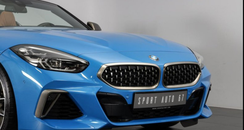 Première Main : oui Malus : 0 € Cout Carte Grise (Exemple pour le Dept.67) : 1 333,76 € Avec sa face avant séduisante, son capot étiré, ses jantes imposantes et ses appendices aérodynamiques, chaque détail de cette Z4 s’inspire de l’univers du sport automobile. Grâce à son look stylé en configuration décapotée, la BMW Z4 ///M40i convainc à tous égards. La double calandre style Mesheffect et les équipements en Cerium grey mat confèrent une allure raffinée et dynamique à la voiture. Un rayonnement que la BMW traduit sur la route en performances. Un vrai régal ! Notre modèle peint en bleu Misano métallisé/cuir Cognac reçoit presque toutes les options du catalogue ce qui en fait une pièce à saisir. Elle est vraiment belle ! Entretiens 100 % BMW : 3 km (mise à la route) - 23 070 km - 29 154 km - 32 689 km - 34 526 km. Pas de malus. Écotaxe payée. Malus véhicule neuf à ce jour = 37 857 € ! - ABS - Accoudoir central - Affichage tête haute - Aide parking avant + arrière - Airbags frontaux + latéraux - Bluetooth - Caméra de recul - Capote électrique - Carnet d’entretien - Climatisation automatique - Contrôle de pression des pneus - Détecteur de pluie - Direction assistée avec servotronic - ESP - Feux automatiques - Filet anti-remous - GPS tactile - Jantes alu 19 pouces - Keyless go - Non fumeur - Ordinateur de bord - Phares directionnels - Régulateur de vitesse - Sièges chauffants - Sièges électriques à mémoire - Sièges sports - Volant multifonctions - Vitres électriques - Véhicule n'ayant jamais été accidenté - Pas d'utilisation sur circuit - Rétroviseurs extérieurs électriques - Pack éclairage - Arceaux anti-retournement - I drive - Boîte automatique 8 vitesses - Pack aérodynamique - Limiteur de vitesse - Système Hi-Fi Harman Kardon - Phares à LED - BMW téléservices - Interface USB - Pack Connected - Volant chauffant - Pack Innovation - Volant sport avec palettes - Car Play - Feux de jour LED - Échappement sport à clapet - Suspension adaptative - Virtual cockpit - Système de protection antivol - Radio DAB - Driving assistant - Android Auto * Malgré le soin que nous apportons à la qualité de nos fiches, des erreurs de saisie sont possibles. N’hésitez pas à nous contacter afin que nous validions ensemble les caractéristiques de ce véhicule.¹ Coût indicatif pour le département 67 pouvant varier en fonction des régions.