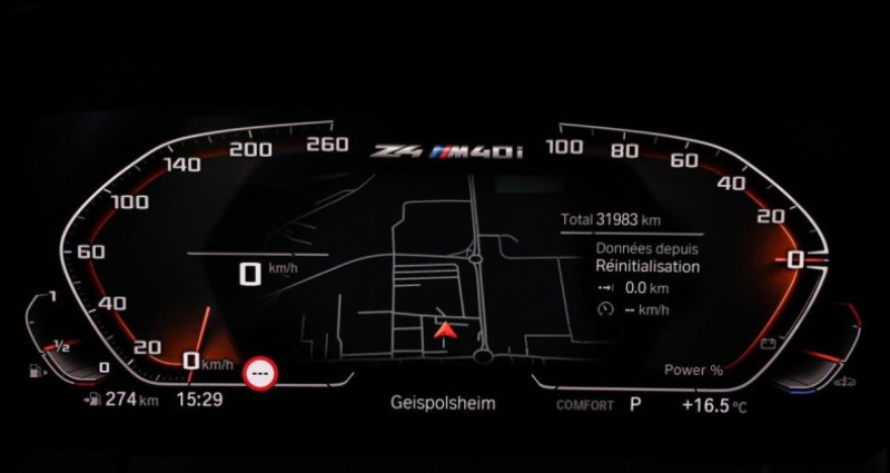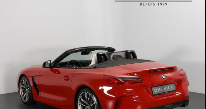 Première Main : oui Malus : 0 € Cout Carte Grise (Exemple pour le Dept.67) : 1 333,76 € Deux éléments définissent la personnalité de ce roadster. La finition qui est souvent en lien avec la motorisation et la combinaison des couleurs. D’une part nous avons sous le capot le moteur le plus puissant de la gamme : le M40i de 340 ch avec la finition ///M. Et d’autre part nous avons une combinaison de couleur chic & sportive : le rouge métallisé San Francisco associé à la sellerie cuir Vernasca Ivory white. Dans un souci du détail son unique propriétaire a commandé ce véhicule avec les freins sport pour bénéficier des étriers rouges. Cela fait un joli rappel de couleur avec la carrosserie. À l’intérieur également les détails ont été bien pensés avec notamment des surpiqûres noires qui mettent en valeur le cuir clair. Entretiens : 7 km (mise à la route) - 9 313 km - 21 040 km - 31 915 km. Si vous aimez les voitures de caractère ou si vous voulez tout simplement vous démarquer, ce Z4 est fait pour vous. - ABS - Accoudoir central - Aide parking avant + arrière - Airbags frontaux + latéraux - Bluetooth - Capote électrique - Carnet d’entretien - Climatisation automatique - Contrôle de pression des pneus - Détecteur de pluie - Direction assistée avec servotronic - ESP - Feux automatiques - Filet anti-remous - GPS tactile - Jantes alu 19 pouces - Keyless go - Non fumeur - Ordinateur de bord - Phares directionnels - Régulateur de vitesse - Rétroviseurs rabattables - Sièges chauffants - Sièges sports - Volant multifonctions - Vitres électriques - Véhicule n'ayant jamais été accidenté - Pas d'utilisation sur circuit - Finition aluminium - Arceaux anti-retournement - I drive - Boîte automatique 8 vitesses - Pack aérodynamique - Limiteur de vitesse - Système Hi-Fi Harman Kardon - Phares à LED - BMW téléservices - Interface USB - Étriers de frein rouges - Volant sport avec palettes - Shadow Line - Car Play - Feux de jour LED - Échappement sport à clapet - Suspension adaptative - Virtual cockpit - Système de protection antivol - Radio DAB - Android Auto * Malgré le soin que nous apportons à la qualité de nos fiches, des erreurs de saisie sont possibles. N’hésitez pas à nous contacter afin que nous validions ensemble les caractéristiques de ce véhicule.¹ Coût indicatif pour le département 67 pouvant varier en fonction des régions.