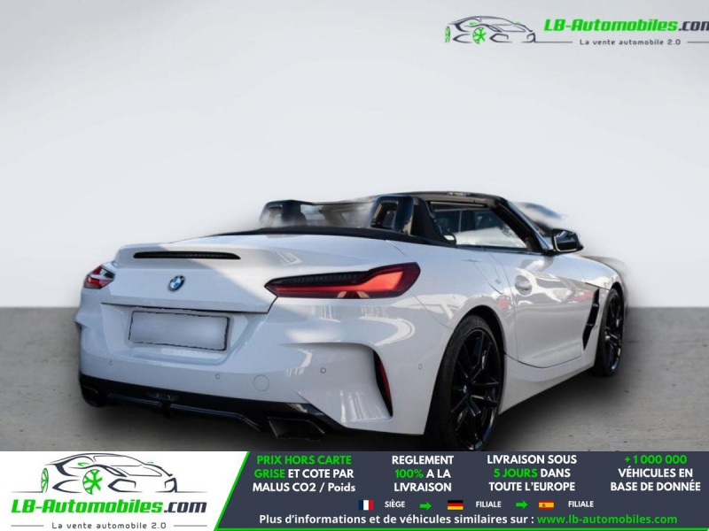 Référence : 1202329 Vos Avantages chez LB-AUTOMOBILES.com / Prix affiché TTC Livré hors carte grise / Livraison sous 10 jours dans toute la France hors 31 / Pas d?avance de frais paiement du véhicule 100% à la livraison par virement. BMW Z4 Neuf remisée, BMW Z4 Occasion Toulouse Beaupuy 31850, BMW Z4 Véhicule sorti de réseau collaborateur, BMW Z4 import, BMW Z4 importateur, BMW Z4 Livraison possible dans toute la France sous 5 jours, BMW Z4, BMW Z4 Location Option Achat, BMW Z4 LLD, BMW Z4 Longue Durée, BMW Z4 TVA récupérable. Possibilité d'extension de garantie 12, 24,36 mois, Pour tout autres voitures import neufs ou occasions collaborateur fortement remisée, Mandataire Audi, Mandataire BMW, Mandataire Volkswagen, Mandataire Mercedes, Mandataire Peugeot Espagne, Mandataire Renault Espagne, Porsche import, Mandataire Citroën Espagne, Mandataire Seat Espagne, n'hésitez pas à nous contacter. « Sous réserve de vente préalable et erreur de saisie » Principaux équipements : - ABS - Accoudoir - Affichage tête haute - Antidémarrage - Apple CarPlay - Assistance au freinage d'urgence - Assistance de démarrage en côte - Assistant d'angle mort - Assistant feux de route - Avertisseur de franchissement de ligne - Bluetooth - Boîte de vitesses robotisée - Capteur de lumière - Capteur de pluie - Cockpit numérique - Commande vocale - Contrôle de la pression des pneus - Diesel avec filtre à particules - Direction assistée - Éclairage adaptatif de virage - Éclairage d'ambiance - Éclairage route non éblouissant - Écran tactile - ESP - Fermeture centralisée - Feux de jour LED - Garantie - GPS - Jantes alliage - Kit mains libres - Ordinateur de bord - Pack sport - Phares LED - Point Isofix siège passager - Port USB - Propulsion - Radio DAB - Réglage électrique des sièges - Réglage électrique des sièges avec fonction mémoire - Régulateur de vitesse adaptatif - Rétroviseur extérieur électrique - Rétroviseur intérieur anti-éblouissement automatique - Rétroviseurs extérieurs rabattables électriquement - Sièges chauffants - Sièges sport - Streaming musical intégré - Support lombaire - Suspension adaptative - Suspension sport - Système antipatinage - Système d'alarme - Système d'appel d'urgence - Système d'avertissement de la distance - Système de reconnaissance des panneaux de signalisation - Système de sonorisation - Système Stop & Start - Tuner/radio - Véhicule non-fumeur - Verrouillage centralisé sans clé - Vitres électriques - Volant chauffant - Volant en cuir - Volant multifonction - WLAN / point d'accès Wi-Fi