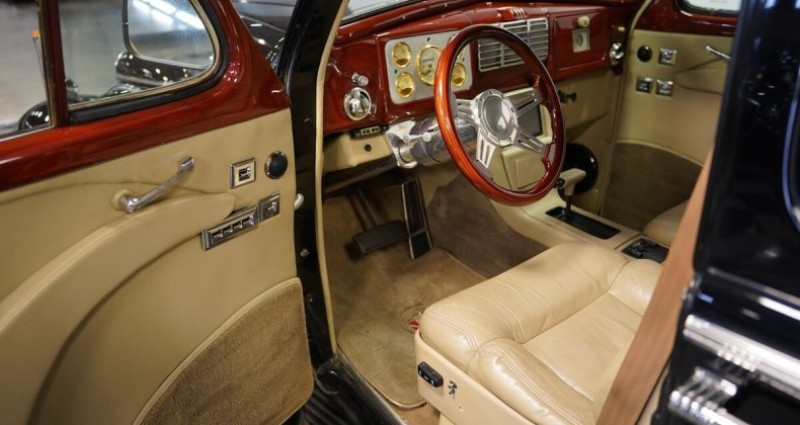 - Marque : Buick - Modèle : Century - Année : 1937 - Carrosserie : Humpback Sedan - Couleur extérieure : Noir - Couleur intérieure : Cuir marron - Moteur : 455 V8 - Boîte de vitesses : 4 vitesses automatique - Suspension avant : Coilover indépendante - Suspension arrière : Feuilles - Freins : Disques avant, roues arrière - Roues : 15 pouces en acier - Pneus : P215/70R15 avant, P235/70R15 arrière - Options : Climatisation, radio XM, système de son Kenwood DNX690HD, sièges électriques, fenêtres électriques, verrouillage électrique, volant à commande électrique, freinage assisté, système d'échappement Dynomax - Kilométrage : 731 miles (environ 1 158 km). Provenance : North Carolina. Disponibilité : environ 7 semaines, clés en main. 48 500 € tout compris (importation, taxes, procédure d'immatriculation). Annonce publiée le 08/12/2025
