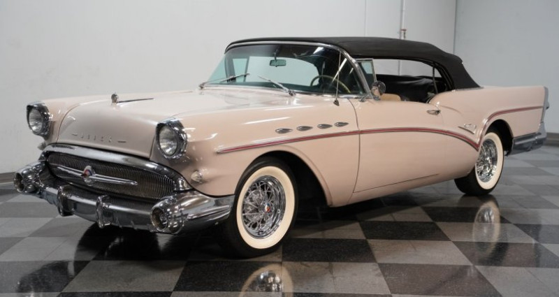 - Marque : Buick - Modèle : Century - Année : 1957 - Carrosserie : Cabriolet - Moteur : 364 CI V8 - Boîte de vitesses : 2 vitesses automatique Dynaflow - Couleur extérieure : Rose crépuscule - Intérieur : Vélin noir et blanc - Condition : Bon état général - Kilométrage : 82 599 - Freinage : Disques avant et arrière - Poids lourds : Oui - Vitres électriques : Oui - Chauffage : Oui - Toit électrique : Oui - Pneus : 225/75R15 - VIN original : 6D1108547 - Financement et plans de protection disponibles - Transport international possible - Siège : Atlanta, Géorgie, États-Unis. Provenance : Georgia. Disponibilité : environ 7 semaines, clés en main. 52 500 € tout compris (importation, taxes, procédure d'immatriculation). Annonce publiée le 13/12/2025