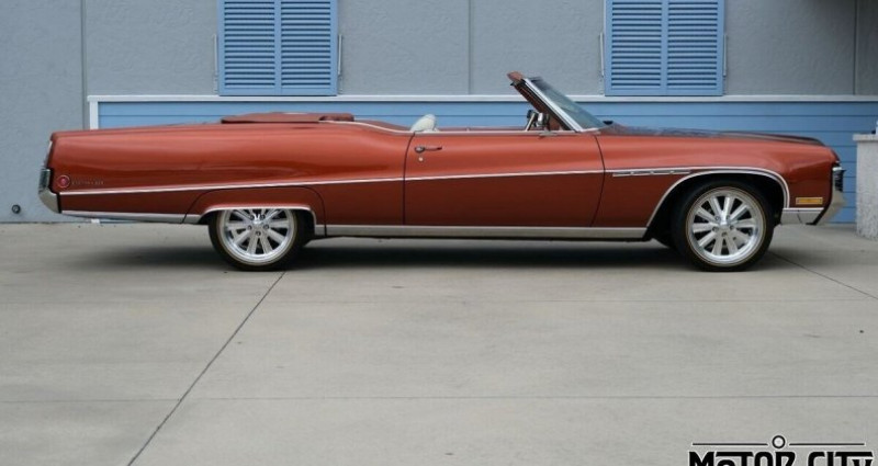Le véhicule en question est un 1970 Buick Electra 225, qui représente parfaitement une combinaison de l'originalité et de la personnalisation adaptée. C'est le dernier modèle de la troisième génération d'Electra, ce qui en fait un modèle de collection fortement recherché. Ce véhicule est motorisé par un moteur V8 de 455ci avec transmission automatique à 3 vitesses. Les modifications de performances incluent des culasses en aluminium, un carburateur Edelbrock, des tuyaux d'échappement recouverts de peinture en poudre, un radiateur à haute capacité en aluminium, un compresseur d'air en aluminium, des ventilateurs de refroidissement électriques doubles, des conducteurs de freins en acier de tresses, un cylindre maître en chrome et des volants de poulies à vis de performance March. Cet Electra est un véhicule agréable à conduire avec des freins à assistance hydraulique, freins à disques avant et arrière avec un amplificateur et pompe de vide, verrous électriques, roulages électriques, rétroviseurs électriques, toit doux en tissu électrique, direction réglable, climatisation, essuie-glaces retardés. L'extérieur de ce véhicule a été peint en Copper métallisé brillant sur mesure. L'intérieur, avec des cuirs ostriches et des joncs colorés en cuivre, s'harmonise parfaitement avec la couleur extérieure personnalisée. Toutes les réparations de restauration ont été effectuées à la plus haute norme. Ce véhicule roule sur des roues en alliage Chip Foose de 18 pouces et des pneumatiques de mode. Cette voiture fait un grand effet lorsqu'elle arrive. La montre de la voiture indique 82, 387 miles. S'il n'y a aucune indication spécifique, ce chiffre est exempt et inconnue si original.. Ce descriptif est basé sur les éléments communiqués par le propriétaire avec un traitement assisté. Merci pour votre indulgence en cas de formulation perfectible. Provenance : Florida. Disponibilité : 7 semaines, clés en main. 80 500 € tout compris (importation, taxes, procédure d'immatriculation). Annonce publiée le 16/10/2025