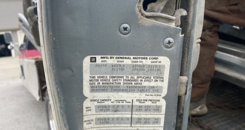 - Année : 1978 - Modèle : Buick Regal - Kilométrage : 44 000 miles - Propriétaire unique - Pas de rouille sur la châssis et les planchers - Il y a un problème de démarrage à résoudre - J'ai des vidéos de la voiture en marche (avec canette à essence, je ne le recommande pas) - Utilisation de carburant laissé dans le réservoir - Rouille superficielle sur la carrosserie - Dernière fois conduite en 2006 - Voiture de garde-meuble réelle - J'ai tous les documents depuis l'achat (je peux vous fournir plus d'informations si vous me contactez) - Je mettrai à jour avec plus de photos bientôt. Provenance : Missouri. Disponibilité : environ 7 semaines, clés en main. 16 000 € tout compris (importation, taxes, procédure d'immatriculation). Annonce publiée le 04/12/2025