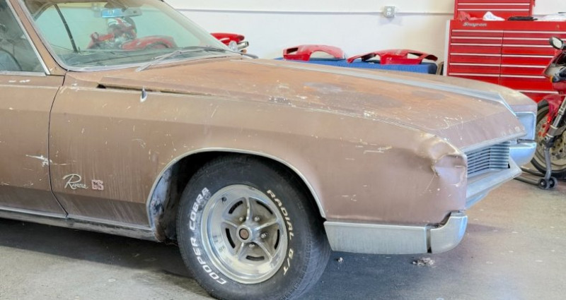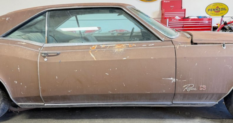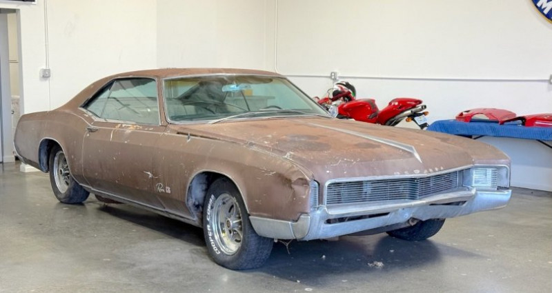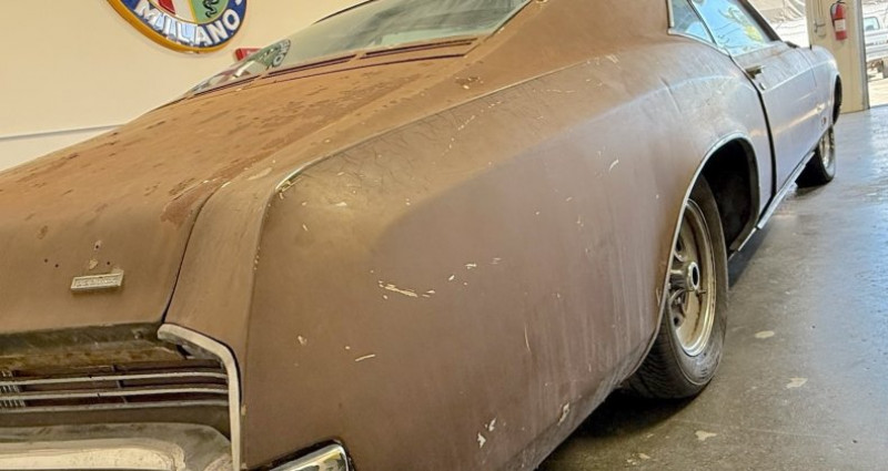 Le véhicule en question est un Riviera GS de 1966, référencé sous le nom de « Super Wildcat », doté d'un moteur de 425 ci équipé de deux carburateurs à quatre barrels, ce qui en fait une version rare puisque seulement 179 de ces véhicules ont été construits avec cette option. La configuration des carburateurs a permis d'amener la puissance du moteur à 360 chevaux et 465 livres-pieds de couple de couple à seulement 2 800 tours par minute. C'est une véritable « hotrod de banquier ».Le véhicule conserve son moteur original équipé du code d'usine « MZ » avec les deux carburateurs à quatre barrels, ainsi que sa transmission Super Turbine 400 avec le code « BS ». Le véhicule est actuellement en état de restauration et a été garé pendant 20 à 30 ans. Le moteur fonctionne bien et son état sonore est sain, comme en témoigne la vidéo. Le réservoir a besoin d'être détartré puisque le carburant contenant dans le réservoir était en mauvais état. Le tableau de bord présente un dispositif d'allumage neuf mais il n'est pas présent dans les photographies.Le véhicule a été initialement peint en Riviera Gold avec un toit en Arctic White (peint et non en tissu) mais a subi un changement de couleur pour sa couleur actuelle bronze. L'intérieur est intact avec sa décoration en cuir en laine en couleur Light Fawn et nécessite une restauration complète. Le véhicule est équipé de freins, de direction assistée, de climatisation, de vitres électriques et d'un volant de direction à la forme de la bague de course (en très bon état). En tant que Gran Sport, il est également équipé de différentiel à verrouillage limité et d'une suspension plus sportive.Le corps du véhicule n'a jamais connu d'accident et n'a pas été recouvert de résine de soudure. Il présente cependant un petite creux sur le capot droit ainsi que d'autres petits dents et graisseurs. Il y a également de la rouille dans la capote de coffre et un peu à la base des vitres arrière et du lunette arrière. Il n'y a pas de rouille dans les panneaux latéraux ou dans la cage à bagages et le coffre est intact.Le radiateur est en bon état et droit. La calandre présente une légère déformation du bas du pare-chocs avant mais est sinon correcte, ainsi que le pare-chocs arrière. Les roues originales sont affaiblies et présentent un halo de chromage.Le véhicule semble complète, sauf les bandes de chrome à l'arrière et la plaque de décoration du coffre arrière. C'est un projet solide et il est absolument digne d'une restauration appropriée en raison de son rareté, de sa beauté et de son intérêt. Il n'en est pas facile de trouver un autre et ils sont rares à la vente, de plus, vous pouvez prendre fierté à la propriété d'une des voitures les plus rares à avoir été produites aux États-Unis.. Ce descriptif est basé sur les éléments communiqués par le propriétaire avec un traitement assisté. Merci pour votre indulgence en cas de formulation perfectible. Provenance : California. Disponibilité : 7 semaines, clés en main. 27 500 € tout compris (importation, taxes, procédure d'immatriculation). Annonce publiée le 05/10/2025