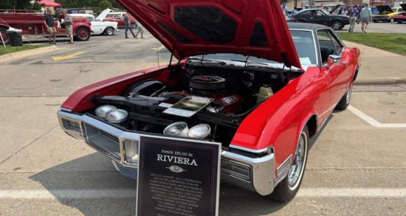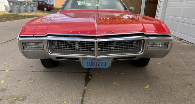 1969 Buick Riviera, 430 V8, clean interior, working AM/FM radio, hidden headlights, 8 track player (not functioning), originally AC (AC parts available), new carpet, optional Buick trunk mat, hide-away headlights, great cruising vehicle, newer aluminum radiator, Edelbrock intake, Holley 750 carb, new head gaskets, original intake, extra parts, newer radiator, Edelbrock intake, Holley 750 carb, new head gaskets.. Provenance : WI, USA. Disponibilité : environ 7 semaines, clés en main. 29 000 € tout compris (import, taxes, procédure d'immatriculation). Annonce publiée le 24/11/2025