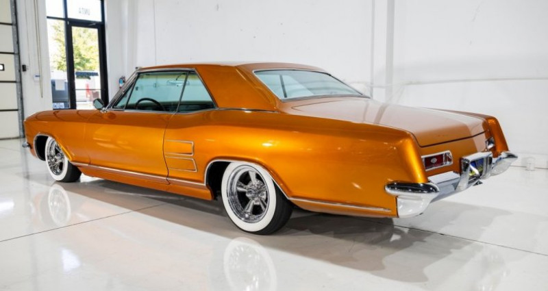 1964 Buick Riviera Custom, Gold w/ White Interior, 425 V8, 3 Speed Automatic, Air Ride, A/C, Wildcat 465 Engine, 425 Cubic Inch V8, Factory Rated at 340HP and 465 lb. ft. Torque, Buick Super Turbine 400 3-Speed Automatic, Custom House of Kolor Candy Pagan Gold High-Metallic Paint, White Interior, Shaved Door Handles, Electric Poppers with Two Remotes and Manual Safety Release, Shaved Deck Lid Trim with Manual Trunk Release, Factory Air Conditioning, Buick 8.2 Inch Rear Axle, Air Ride Suspension System, Center Console, Chrome Supremes 5-Spoke Wheels, Wide Whitewall Tires. Provenance : Texas. Disponibilité : environ 7 semaines, clés en main. 50 000 € tout compris (importation, taxes, procédure d'immatriculation). Annonce publiée le 24/11/2025