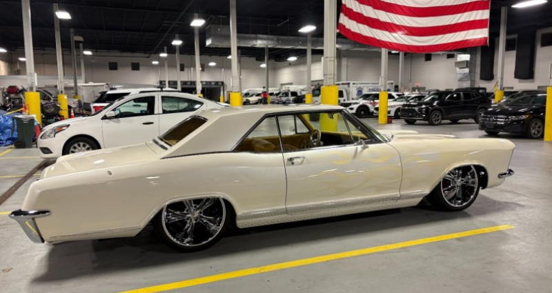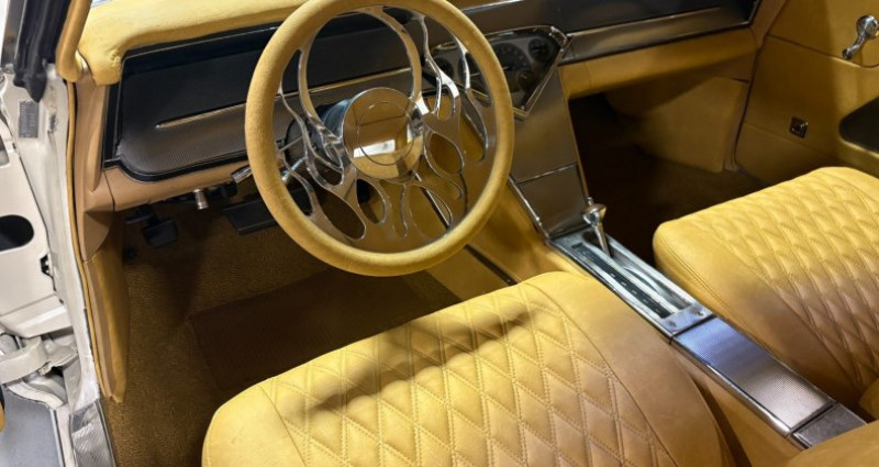 - Couleur extérieure : Blanche (Pearl White, White Diamond - Cadillac Escalade Paint) avec flammes douces de couleur Mild Gold Ghost - Intérieur : Cuir simulé doré doublement brodé avec des diamants, couleur Double Diamond Stitched - Moteur : 401, 2 - 4 Barrel Carburetors, V8 - Boîte de vitesses : Automatique - Travaux : Resto-mod, restauration rotisserie extensive - Kilométrage depuis la restauration : environ 1 000 miles - Freinage avant : Front Wilwood - Suspension : AccuAir - Roues : 20 pouces Chip Foose Chrome 5-spoke - Autres équipements : Tri-Five Truck Dakota Digital Dash, système de direction à puissance assistée, volant réglable, vitres électriques, freinage arrière non équipé d'AC (mais avec un kit March Performance Serpentine & Pulley). Provenance : Maryland. Disponibilité : environ 7 semaines, clés en main. 74 000 € tout compris (importation, taxes, procédure d'immatriculation). Annonce publiée le 19/12/2025