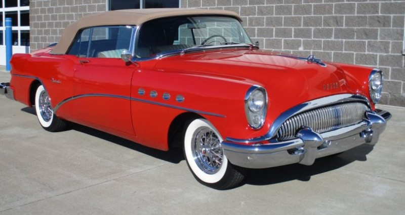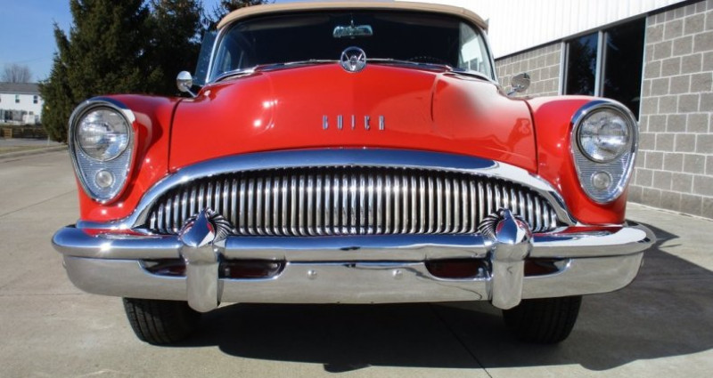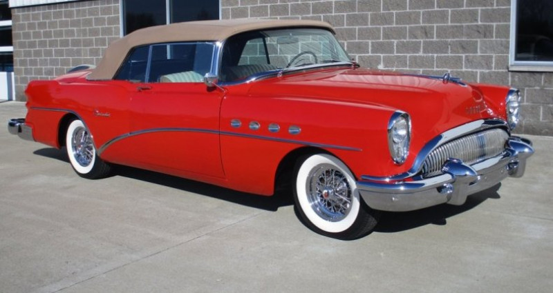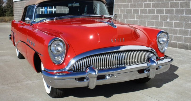 - Marque : Buick - Modèle : Roadmaster Convertible - Année : 1954 - Numéro d'inventaire : R1005 - Couleur extérieure : Rouge - Couleur intérieure : Cuir brun - Transmission : 3 vitesses automatique - Moteur : 322 CI V8 - Kilométrage : 5 021 miles - Équipement : Toit convertible électrique, radio AM, direction assistée, freinage assisté, fenêtres électriques, roues Kelsey Hayes, pneus blancs en bandes larges, kit Continental, garde-boucliers brillants. Provenance : Indiana. Disponibilité : environ 7 semaines, clés en main. 79 500 € tout compris (importation, taxes, procédure d'immatriculation). Annonce publiée le 19/12/2025