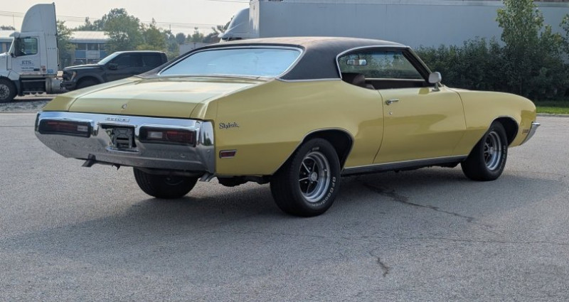 Le vendeur Survivor Classic Car Services de Chicago propose un modèle 1972 Buick Skylark avec un châssis presque intégral. L'habitacle dispose d'un moteur V8 à huit cylindres de 350 pouces cubes alimenté par un carburateur à quatre corps. Une transmission automatique à trois vitesses assure la transmission de la puissance à l'arrière. Le véhicule a été récemment réaménagé avec des aménagements tels que des collecteurs de gaz de Douglas en céramique revêtus de vernis et un système d'échappement à deux conduits doté de silencieuses soupapes munies de filtres à échappement amortisseurs. Le Buick est peint en jaune à rayures soleil et a reçu une refonte récente de pneus, les pneus originaux présentant des signes d'usure. Les amortisseurs et ressorts ont été changés pour maintenir la Skylark à la pointe de la technologie. L'habitacle possède un siège banc en cuir vinyl de teinte marron lisse et sans fente. Le volant à colonne permet de basculer le levier de vitesse vers la position D, ce qui libère la musique mélodieuse de l'échappement pour un voyage relaxant autour de la ville. Ce véhicule peut être visité uniquement à l'appointement. Si vous souhaitez le consulter, veuillez contacter le bureau pour fixer une date.. Ce descriptif est basé sur les éléments communiqués par le propriétaire avec un traitement assisté. Merci pour votre indulgence en cas de formulation perfectible. Provenance : Illinois. Disponibilité : 7 semaines, clés en main. 35 000 € tout compris (importation, taxes, procédure d'immatriculation). Annonce publiée le 03/10/2025