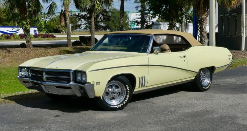 - Année : 1969 - Marque : Buick - Modèle : Skylark - Kilométrage (Actuel) : 68 111 miles - VIN : 444679H262152 - Stock : 1107-TAMPA - Moteur : 455 CID V8 - Boîte de vitesses : Turbo 400 Automatique - Couleur extérieure : Cameo Cream - Couleur intérieure : Buckskin - Jantes : Cragar 5-spoke - Intake : amélioré - Carburateur : Edelbrock - Distributeur : HEI - Disponible à la visite par rendez-vous uniquement.. Provenance : Florida. Disponibilité : environ 7 semaines, clés en main. 49 000 € tout compris (importation, taxes, procédure d'immatriculation). Annonce publiée le 22/12/2025