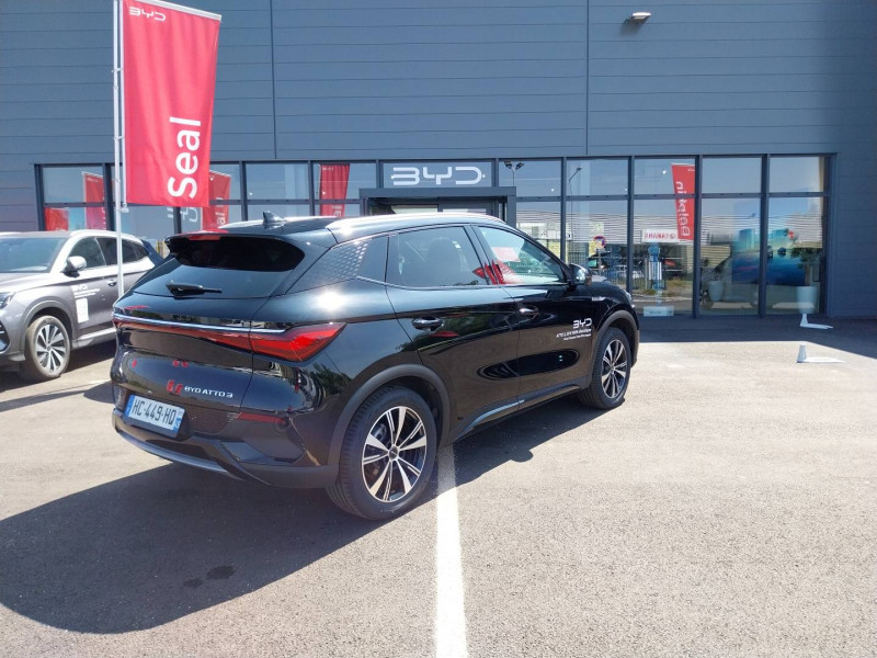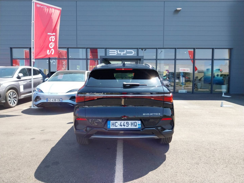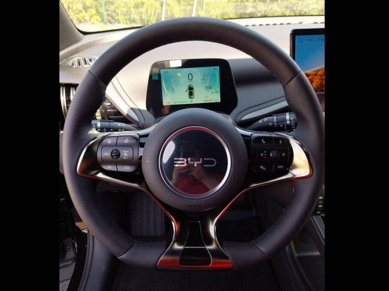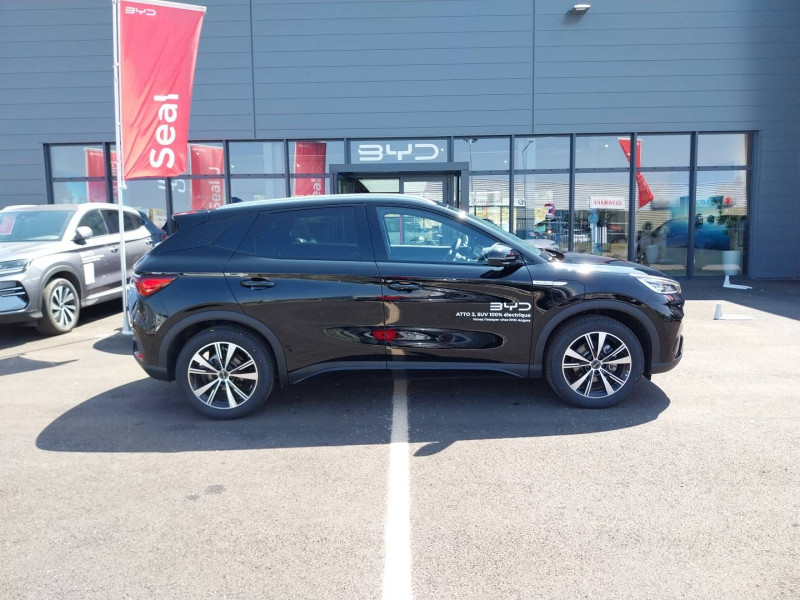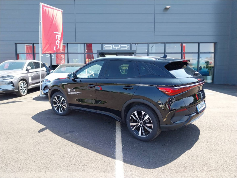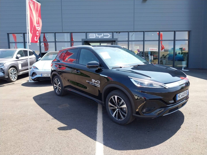 2 x clé intelligente et 1 x carte-clé NFC / 2 x port de charge USB AR (1 x Type A, 1 x Type C) / 2 x port de charge USB AV (1 x Type A, 1 x Type C) / 360° caméra / 4 x lève-vitre à impulsion avec fonction anti-pincement / Accoudoir central avec double porte-gobelet, AV et AR / Airbag passager AV avec contacteur de désactivation / Alerte de trafic transversal AR (RCTA) et Freinage en cas de trafic transversal AR (RCTB) / Appuie-tête central des sièges AR / Arrêt confort (CST) / Assistance au changement de voie (LCA) / Assistance au maintien sur la voie (LKA) / Avertissement de collision AR (RCW) / Avertissement de collision AV (FCW) / Avertissement d'ouverture de porte (DOW) / Barres de toit en aluminium / Bouches d'aération aux sièges AR / Charge sans fil de smartphone / Chargeur embarqué 11 kW (OBC) / Chargeur embarqué 7 kW (OBC) / Ciel de pavillon en tissu / Cloud service - BYD APP / Commande vocale intelligente - "Hi, BYD" / Connectivité 4G embarquée / Contrôle de descente en pente (HDC) / Détection d'angle mort (BSD) / Distribution électronique de la force de freinage (EBD) / Eclairage d'accompagnement / Eclairage d'ambiance rythme multicolore (Panneau de porte et tablette) / Eclairage d'ambiance rythme multicolore (Poignée de porte) / Eclairage de coffre / Eclairage de la console centrale / Eclairages de portes AV à LED / Eclairages de sol dans les rétroviseurs extérieurs / Eclairages de sol de siège AV / Ecran tactile rotatif électrique 15,6" / Entrée sans clé et démarrage sans clé / Filtre à air PM2.5 / Fonction Véhicule à chargement (V2L) / Freinage d'urgence automatique (AEB) / Frein de stationnement intégré (IPB) / Garnissage intérieur partiellement en similicuir vegan / Informations intelligentes de limite de vitesse (ISLI) et Contrôle intelligent de limite de vitesse / ISOFIX et i-Size, siège passager AV et sièges AR externes / Lampe de lecture à LED AV / Lampe de lecture à LED latérale AR / Maintien automatique du véhicule (AVH) / Maintien d'urgence dans la voie (ELK) / Modes de conduite : Eco, Normal, Sport / Navigation / Pare-soleil AV avec éclairage du miroir / Pneus 235/50 R18 / Pompe à chaleur / Programme électronique de stabilité (ESP) / Radio DAB et Radio FM / Régulateur de vitesse adaptatif (ACC) et régulateur de vitesse intelligent (ICC) / Rétroviseur à atténuation automatique / Siège conducteur avec appuie-tête intégré / Siège du conducteur avec réglage électrique dans 6 directions / Siège du passager AV avec réglage électrique dans 4 directions / Siège passager AV avec appuie-tête intégré / Sièges AR rabattables séparément - 40:60 / Sièges en similicuir vegan / Système antipatinage (TCS) / Système d'appel d'urgence E-Call / Système de freinage anti-blocage (ABS) / Système de frein de stationnement électrique (EPB) / Système de purification d'air PM2.5 / Tableau de bord TFT 5" tout LCD / Tablette AR du coffre / Toit ouvrant panoramique avec fonction anti-pincement, avec pare-soleil à réglage électrique / Verrouillage de sécurité enfant mécanique / / Modèles équivalents : MG Marvel R - VW ID4 - Tesla Model Y