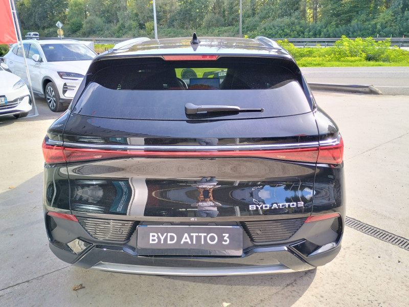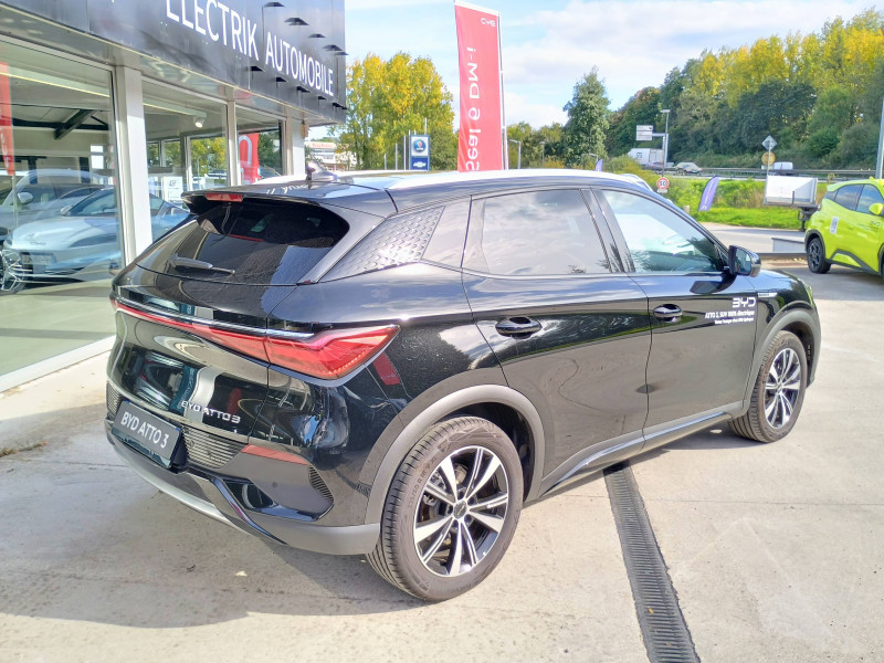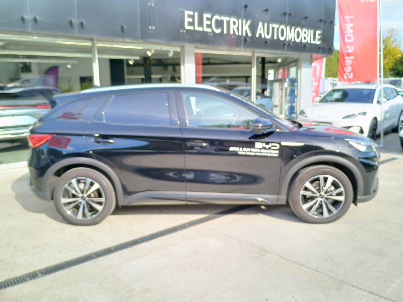 2 x clé intelligente et 1 x clé NFC / 4 x lève-vitre à impulsion avec fonction anti-pincement / Accoudoir AR, 2 porte-gobelets / Airbag passager AV avec contacteur de désactivation / Alerte de trafic transversal AR (RCTA) et Freinage en cas de trafic transversal AR (RCTB) / Appuie-tête central des sièges AR / Arrêt confort (CST) / Assistance au changement de voie (LCA) / Assistance au maintien sur la voie (LKA) / Assistance feux de route (HMA) / Avertissement de collision AR (RCW) / Avertissement de collision AV (FCW) / Avertissement d'ouverture de porte (DOW) / Barres de toit en aluminium / Boîte de vitesse automatique à variation continue / Bouches d'aération AR / Caméra de vue à 360° / Charge sans fil de smartphone 15W / Chargeur embarqué 11 kW (OBC) / Commande vocale intelligente - "Hi, BYD" / Connectivité 4G embarquée / Contrôle de descente en pente (HDC) / DAB+ et FM / Détection d'angle mort (BSD) / Distribution électronique de la force de freinage (EBD) / Eclairage ambiant, multicolore, réagissant au rythme (bouton de porte) / Eclairage ambiant, multicolore, réagissant au rythme (panneau et rembourrage de porte) / Eclairage d'accompagnement (fonction d'allumage anticipé et d'extinction différée des phares) / Eclairage de boîte à gants / Eclairage de coffre / Eclairage de la console centrale / Eclairages de porte AV à LED / Eclairages de sol de siège AV / Eclairages de sol par les rétroviseurs extérieurs / Ecran tactile rotatif électrique 15,6" / Filtre à air PM2.5 / Fonction Véhicule à chargement (V2L) / Freinage d'urgence automatique (AEB) / Frein assisté intégré (IPB) / Frein de stationnement électrique (EPB) / Garniture de pavillon, tissu / Informations intelligentes de limite de vitesse (ISLI) et Contrôle intelligent de limite de vitesse (ISLC) / ISOFIX et i-Size, siège passager AV et sièges AR externes / Lampes de lecture AV à LED / Lampes de lecture latérales AR à LED / Maintien automatique du véhicule (AVH) / Maintien d'urgence dans la voie (ELK) / Modes de conduite : Eco, Normal, Sport / Navigation / Pare-soleil AV avec éclairage du miroir / Pneus 235/50 R18 / Pompe à chaleur / Ports USB AR, 1 x 18W type A, 1 x 60W type C / Ports USB AV, 1 x 18W type A, 1 x 60W type C / Programme électronique de stabilité (ESP) / Régulateur de vitesse adaptatif (ACC) et régulateur de vitesse intelligent (ICC) / Rétroviseur à atténuation automatique / Sellerie, partiellement couverte de similicuir vegan / Service Cloud - Appli BYD / Siège conducteur avec appuie-tête intégré / Siège du conducteur avec réglage électrique dans 6 directions / Siège du passager AV avec réglage électrique dans 4 directions / Siège passager AV avec appuie-tête intégré / Sièges AR rabattables séparément - 40:60 / Sièges en similicuir vegan / Système antipatinage (TCS) / Système de freinage anti-blocage (ABS) / Système de surveillance indirecte du conducteur (DMS) / Tableau de bord TFT 5" tout LCD / Tablette de coffre / Toit ouvrant panoramique avec fonction anti-pincement, avec pare-soleil à réglage électrique / Verrouillage de sécurité enfant mécanique / Vitres AR et lunette AR, vitrage surteinté / Volant chauffant / / Modèles équivalents : MG Marvel R - VW ID4 - Tesla Model Y