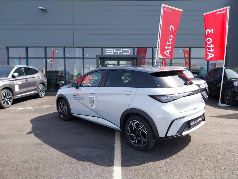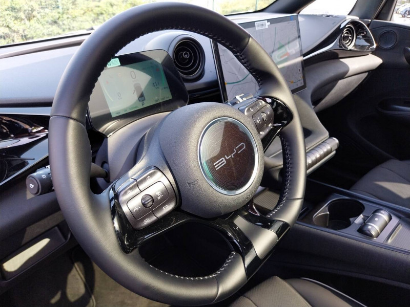 2 x clé intelligente et 1 x carte-clé NFC / 4 x lève-vitre à impulsion avec fonction anti-pincement / Accoudoir central avec double porte-gobelet / Aide d'urgence au maintien dans la voie (ELKA) / Airbag passager AV avec contacteur de désactivation / Alerte de trafic transversal AR (RCTA) et freinage en cas de trafic transversal AR (RCTB) / Alerte de trafic transversal AV (FCTA) et freinage en cas de trafic transversal AV (FCTB) / Android Auto et Apple CarPlay / Arrêt confort (CST) / Assistance feux de route (HMA) / Avertissement de sortie de voie (LDW) / Avertissement d'ouverture de porte (DOW) / Avertissement prédictif de collision (PCW) / Caméra à 360° / Charge sans fil de smartphone / Chargeur embarqué 11 kW (OBC) / Commande vocale intelligente - "Hi, BYD" / Connectivité 4G embarquée / Contrôle de limite de vitesse intelligente (ISLC) / DAB+ & FM / Détection d'angle mort (BSD) / Détection de présence d'enfant (CPD) / Distribution électronique de la force de freinage (EBD) / Eclairage d'accompagnement (fonction d'allumage anticipé et d'extinction différée des phares) / Eclairage de coffre / Eclairages de sol dans les rétroviseurs extérieurs / Ecran tactile rotatif électrique 12,8" / Filtre à air PM2.5 / Fonction Véhicule à chargement (V2L) / Freinage d'urgence automatique (AEB) / Frein assisté intelligent (IPB) / Gestion de la fatigue du conducteur (DFM) indirecte / ISOFIX et i-Size, siège passager AV et sièges AR externes / Lampes de lecture à LED AR / Lampes de lecture à LED AV / Modes de conduite : Eco, Normal, Sport, Neige / Navigation / Pare-soleil AV avec éclairage du miroir / Pompe à chaleur / Ports USB AR, 1x 18 W type C / Ports USB AV, 1 x 18 W type C, 1 x 60 W type C / Prévention de sortie de voie (LDP) / Régulateur de vitesse adaptatif (ACC) et régulateur de vitesse intelligent (ICC) / Service Cloud - Appli BYD / Siège du conducteur avec réglage électrique dans 6 directions / Siège du passager AV avec réglage électrique dans 4 directions / Sièges AR rabattables séparément - 40:60 / Sièges en similicuir vegan / Système antipatinage (TCS) / Système audio à 6 HPs avec optimisation du son / Système de frein de stationnement électrique (EPB) / Tableau de bord TFT 5" tout LCD / Tablette AR du coffre / Verrouillage de sécurité enfant mécanique / Vitres AR et lunette AR, vitrage surteinté / / Modèles équivalents : Volvo EX30 - MG4 - Megane E-Tech - VW ID3