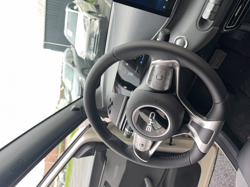 2 x clé intelligente / Contrôle intelligent des feux de route (IHBC) / DAB+ et FM / Distribution électronique de la force de freinage (EBD) / Ecran tactile rotatif électrique 10,1" / Aide d'urgence au maintien dans la voie (ELKA) / Airbag passager AV, contacteur de désactivation / Android Auto et Apple CarPlay / Arrêt confort (CST) / Auto Hold / Automat à fonction continue / Avertissement prédictif de collision (PCW) / Caméra AR / Ceintures de sécurité AV pré-tendues et limitatrices d'effort / Chargeur embarqué 11 kW / Clé Digitale BYD / Commande vocale intelligente - "Hi, BYD" / Connectivité 4G à bord / Contrôle de limite de vitesse intelligent (ISLC) / Fonction véhicule-charge (V2L) / Freinage d'urgence automatique (AEB) / Freinage intelligent (IPB) / Frein de stationnement électrique (EPB) / Gestion de la fatigue du conducteur (DFM) indirecte / ISOFIX and i-Size, front passenger and outer rear seats / Keyless entry & keyless start / Lampes de lecture AV à LED / Modes du conduite: Eco, Normal, Sport, Snow / Navigation / Pare-brise AV, essuie-glaces à détection de pluie / Pare-soleil AV avec éclairage du miroir / Ports USB AV, 1 x 18 W type C, 1 x 60 W type C / Régulateur de vitesse adaptatif (ACC) et régulateur de vitesse intelligent (ICC) / Sécurité enfant mécanique / Sellerie, similicuir vegan noir et gris / Service Cloud - Appli BYD / Siège conducteur, réglable électriquement, 6 directions / Siège passager AV, réglable électriquement, 4 directions / Sièges AR rabattables divisés, 50:50 / Système anti bloquage (ABS) / Système de contrôle de traction (TCS) / Système de stabilisation éléctronique (ESP) / Tableau de bord 7" / Vitre côté conducteur, à impulsion et avec fonction anti-pincement /