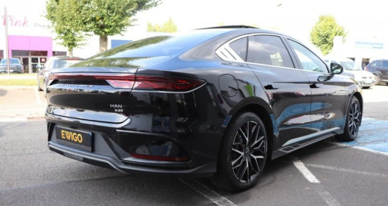 BYD Han BEV 515 85KWH EXECUTIVE AWD BVA CAMERA 360 TOIT OUVRANT SIEGES CHAUFFANTS VENTILES berline, noir, 9 cv, 4 portes, première mise en circulation le 23/02/2024, garantie 6 mois. - NOS SERVICES ET PRESTATIONS COMPLÉMENTAIRES - - Visite virtuelle : avant de vous déplacer, visualisez votre futur véhicule sous toutes ses coutures . Contactez-nous pour en voir plus ! - Extension de garantie jusqu'à 60 mois. - Solutions de Financement de 12 à 84 mois. - Livraison dans toute la France métropolitaine (sur devis). - Reprise possible de votre ancien véhicule. - Les informations délivrées par cette annonce sont non contractuelles et données à titre indicatif. Packs disponibles (véhicules éligibles au Label) - Pack Clés en Main - 691 € TTC(¹)(²) Démarches (hors carte grise) | 1/4 de carburant | Nettoyage First | Garantie 6 mois | Label inclus? - Pack Sérénité - 891 € TTC(¹)(²)- Démarches (hors carte grise) | 1/2 de carburant | Nettoyage Confort | Garantie 12 mois | Label inclus? - Pack Prestige - 1.091 € TTC(¹)(²) Démarches (hors carte grise) | Plein complet | Nettoyage Prestige | Garantie 12 mois | Label inclus? + Surprise du chef - (¹) Les véhicules non éligibles au Label bénéficient de tarifs préférentiels. Veuillez contacter votre conseiller pour obtenir les conditions tarifaires applicables. (²) Tarif pour les véhicules deux roues motrices dont la valeur de vente est inférieure à 60 000 € TTC. - Prise en charge par nos soins à la gare de Metz ou lorraine TGV Véhicule visible sur rendez vous : ? Horaires d'ouverture ?? Du lundi au vendredi : 9h00 - 12h30 / 14h00 - 19h00 ?? Le samedi : 9h00 - 17h00 - Notre Agence Ewigo Metz se situe dans la deuxième plus grande zone commerciale de France Venez nous découvrir au 8 Allée des Tilleuls 57130 à Jouy Aux Arches [Coordonnées masquées] / [Coordonnées masquées] [Coordonnées masquées] 5 places OPTIONS ET ÉQUIPEMENTS : Audio - Télécommunications : - Android auto sans fil - Apple CARPLAY sans fil - Reconnaissance vocale - Bluetooth - GPS - Prise audio usb - commandes vocales - prise audio auxiliaire Conduite : - Accès et démarrage sans clé - Accès main libre - Choix du mode de conduite - Différentiel autobloquant - Essuies glaces automatiques - Frein de parking auto - Frein de parking électrique - Line assist - Suspension pilotée - Système de recupération d'énergie au freinage - affichage tête haute - allumage automatique des feux - carte main libre - démarrage sans clé - détecteur de pluie - limiteur de vitesse - régulateur de vitesse - suspension sport Couleur : - Peinture métallisée Extérieur : - Aide au parking AR - Caméra AV + AR - Ceinture de vitrage chromée - Clignotants dynamiques AR - Clignotants dynamiques AV - Clignotants dynamiques AV /AR - Lave phares - Phares AR à led - Phares AV de jour à LED - Phares additionnels en virage - Système d'éclairage intelligent - Ouverture du coffre à distance - camera 360 - caméra de recul - jantes : aluminium - phares directionnels - phares à LED - projecteurs bi-xénon - projecteurs xénon - rétroviseurs rabattables - rétroviseurs électriques - système d'aide au stationnement - toit ouvrant - toit ouvrant panoramique - toit ouvrant électrique Intérieur : - Double vitrage - Eclairage d'ambiance - Inserts aluminium - Inserts bois - Miroir de courtoisie chauffeur éclairé - Miroir de courtoisie passager éclairé - Pédalier sport - Siège conducteur et passager avec réglage lombaire - Siège conducteur à mémoire - Sièges AV et AR électriques - Sièges baquets - Sièges à mémoire - Volant alu/cuir - Porte gobelet avant - accoudoir central - climatisation - climatisation multi zone - fermeture centralisée - non fumeur - ordinateur de bord - sièges chauffants - sièges ventilés - vitres surteintées - vitres électriques - volant chauffant Pack : - Boîte de vitesse automatique - Mode Eco - Mode confort - Mode sport - Recharge sans fil par induction - Tableau de bord cuir - 4 roues motrices - GPS couleur - volant multifonctions - volant réglable Sellerie : - Sellerie cuir Sécurité : - Airbags - Alerte franchissement de lignes - Contrôle de pression des pneus - Détection somnolence - Radar anti-collision - Système de lecture des sms - ABS - Aide au demarrage en pente - ESP - aide au freinage d'urgence - airbags latéraux - avertisseur d'angle mort - fixations ISOFIX - kit de dépannage pneumatique - phares antibrouillard Autres équipements et informations : - Conduite autonome niveau 2 - Double des clés - Détection des piétons - Entretien constructeur - Factures d'entretien - Line assist avec correction de trajectoire - Mode normal - Phares AV de jour - Pleins phares auto - Classe Crit'air : ze - GPS tactile - Puissance kilowatt : 380 kw - USB - dimension des jantes : 19 pouces - puissance réelle : 517 ch - état : bon Référence annonce : d147494-LBC