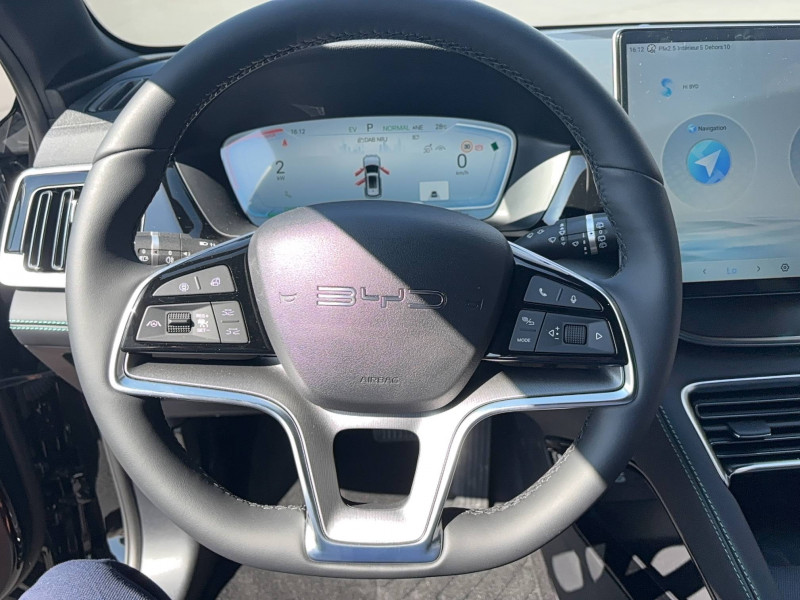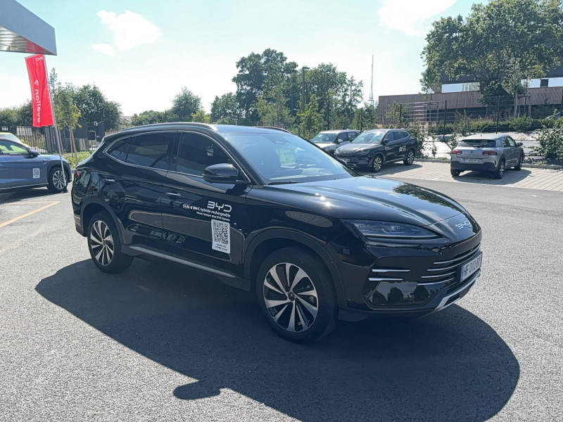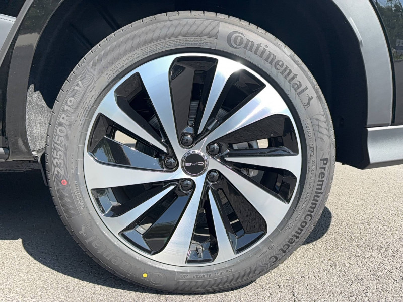 Eclairage d'accueil dynamique / Siège passager AV réglable éclectriquement, 4 directions / Sièges AR, appuie-tête réglable manuellement / Sièges AR rabattables séparément - 40:60 / Système antipatinage (TCS) / Système audio Infinity à 10 HP / Système de contrôle anti-renversement (RMI) / Système de priorité au freinage sur les pédales (BOS) / Système de purification d'air PM2.5 / Système de verrouillage automatique / Tableau de bord LCD 12,3" tout TFT / Tablette AR du coffre / Toit ouvrant panoramique avec fonction anti-pincement, avec pare-soleil à réglage électrique / Verrouillage de sécurité enfant mécanique / Vitres AR et lunette AR, vitrage surteinté / Volant chauffant / 2 x clé intelligente / 4 x lève-vitre à impulsion avec fonction anti-pincement / Accoudoir AR, 2 porte-gobelet / Airbag passager AV avec contacteur de désactivation / Alerte de trafic transversal AR (RCTA) et freinage en cas de trafic transversal AR (RCTB) / Alerte de trafic transversal AV (FCTA) et freinage en cas de trafic transversal AV (FCTB) / Arrêt confort (CST) / Assistance à la sortie de voie (LDA) / Assistance au changement de voie (LCA) / Assistance au maintien sur la voie (LKA) / Assistance d'urgence au maintien dans la voie (ELKA) / Assistance feux de route (HMA) / Assistance hydraulique au freinage (HBA) / Avertissement de collision AR (RCW) / Avertissement de collision AV (FCW) / Avertissement de sortie de voie (LDW) / Avertissement d'ouverture de porte (DOW) / Avertissement prédictif de collision (PCW) / Barres de toit en aluminium / Bouches d'aération AR / Caméra à 360° / Ceinture de sécuritéà limitation de force de siége AR Médian / Charge sans fil de smartphone 2x15W / Chargeur embarqué 11 kW (OBC) / Commande vocale intelligente - "Hi, BYD" / Connectivité 4G embarquée / Contrôle de descente en pente (HDC) / Contrôle de la dynamique du véhicule (VDC) / Contrôle de maintien en côte (HHC) / DAB+ & FM / Décélération contrôlée pour frein de stationnement (CDP) / Détection d'angle mort (BSD) / Détection de la fatigue du conducteur (DFM) indirecte / Détection de présence d'enfant (CPD) / Distribution électronique de la force de freinage (EBD) / Eclairage ambiant, multicolore, réagissant au rythme / Eclairage d'accompagnement (fonction d'allumage anticipé et d'extinction différée des phares) / Eclairages de porte AV à LED / Eclairages de sol dans les rétroviseurs extérieurs / Eclairages de sol de siège AV / Ecran tactile rotatif électrique 15,6" / Filtre à air PM2.5 / Fonction Auto Hold du freinage / Fonction Véhicule à chargement (V2L) / Freinage d'urgence automatique (AEB) / Frein de stationnement électronique (EPB) / ISOFIX et i-Size, siège passager AV et sièges AR externes / Jantes en alliage 19" bicolores avec pneus 235/50 R19 / Lampe de lecture à LED AV / Lampe de lecture à LED latérale AR / Modes de conduite : Eco, Normal, Sport, Neige / Pare-brise AV, essuie-glaces a détection de pluie / Pare-brise AV, protection anti-UV, isolation thermique, insonorisation / Pare-soleil AV avec éclairage du miroir / Ports USB AR, 2 x 18 W type C / Ports USB AV, 1 x 18 W type C, 1 x 60 W type C / Prévention de sortie de voie (LDP) / Régulateur de vitesse adaptatif (ACC) et régulateur de vitesse intelligent (ICC) / Rétroviseur à atténuation automatique / Service Cloud - Appli BYD / Servo-frein hydraulique (HBB) / Siège conducteur avec appuie-tête intégré / Siège conducteur, réglable électriquement, 8 directions, mémoire de position / Siège conducteur, ventilé, chauffant, réglage mémorisé / Siège passager AV avec appuie-tête intégré / Siège passager AV avec ventilation et chauffage /