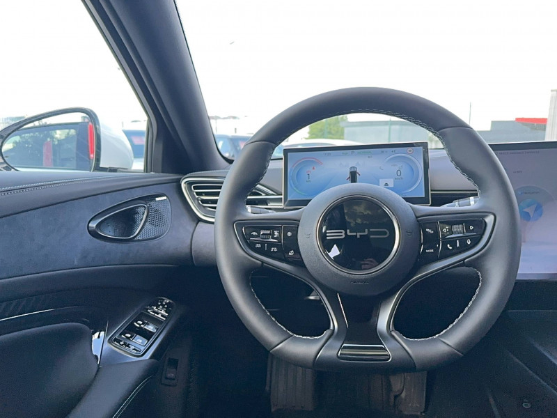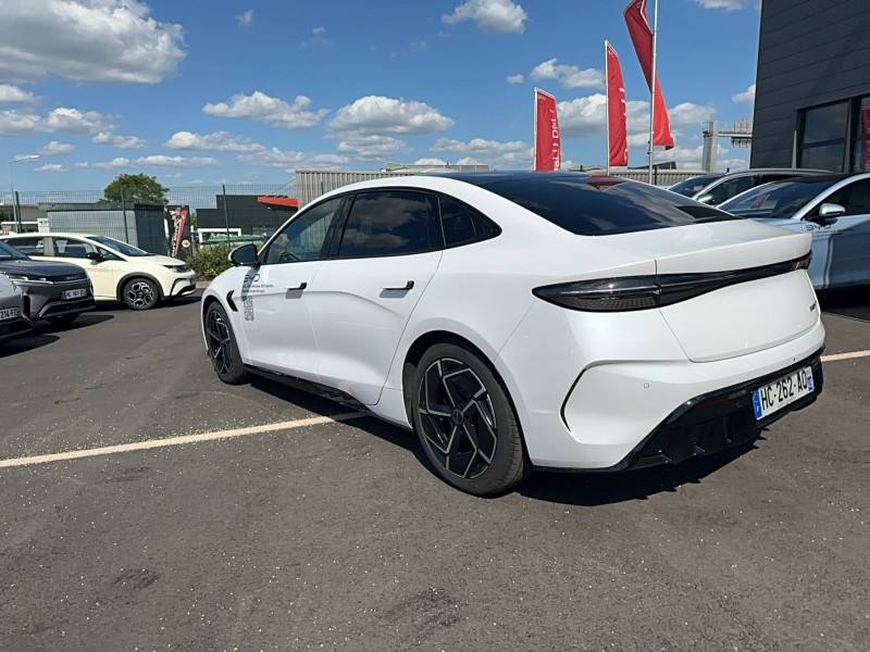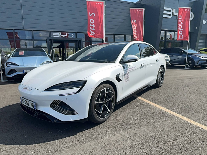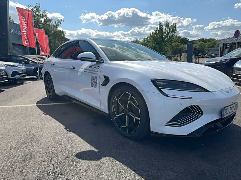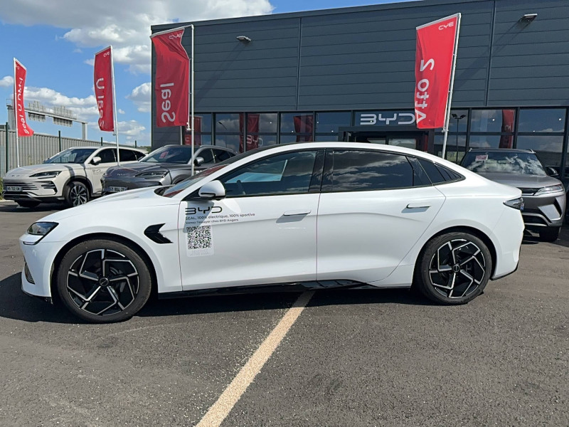 2 x clé intelligente et 1 x carte-clé NFC / 2 x porte-gobelets AV 2 x porte-gobelets AR / Aide à la commande vocale - "Hi, BYD" / Aide à la gestion des embouteillages (TJA) / Aide à la sortie de voie (LDA) et avertissement de sortie de voie (LDW) / Aide d'urgence au maintien dans la voie (ELKA) / Airbag passager AV avec contacteur de désactivation / Airbag rideau latéral droit / Airbag rideau latéral gauche / Alerte de trafic transversal AR (RCTA) et freinage en cas de trafic transversal AR (RCTB) / Alerte de trafic transversal AV (FCTA) et freinage en cas de trafic transversal AV (FCTB) / Assistance au changement de voie (LCA) / Avertissement de collision AR (RCW) / Avertissement de collision AV (FCW) / Avertissement de vigilance du conducteur (DAW) / Avertissement d'ouverture de porte (DOW) / Avertissement prédictif de collision (PCW) / Caméra à 360° / Charge sans fil de smartphone 15W / Chargeur embarqué 11 kW (OBC) / Coffre AV avec couvercle - 53 L / Commande de climatisation à double zone / Connectivité 4G embarquée / Contrôle de la dynamique du véhicule (VDC) / Détection d'angle mort (BSD) / Détection de présence d'enfant (CPD) / Disque ventilé AR / Disque ventilé AV perforé / Eclairage d'accompagnement (fonction d'allumage anticipé et d'extinction différée des phares) / Eclairage d'ambiance multicolore toutes les portes, tableau de bord et espace AV pour les pieds / Eclairages de sol dans les rétroviseurs extérieurs / Ecran tactile rotatif électrique 15,6" / Etriers fixes à AV / Filtre à air PM2.5 / Fonction Véhicule à chargement (V2L) / Freinage d'urgence automatique (AEB) / Frein de stationnement électronique (EPB) / Générateur d'ions négatifs / Informations intelligentes de limite de vitesse (ISLI) et Contrôle intelligent de limite de vitesse / ISOFIX et i-Size, siège passager AV et sièges AR externes / Jantes en alliage 19" bicolores / Maintien automatique du véhicule (AVH) / Modes de conduite : Eco, Normal, Sport, Neige / Pare-brise AV, essuie-glaces a détection de pluie / Pare-brise AV, protection anti-UV, isolation thermique, insonorisation / Pneus 235/45 R19 / Pompe à chaleur / Ports USB AR, 1x 18 W type C / Ports USB AV, 1 x 18 W type C, 1 x 60 W type C / Radio DAB et Radio FM / Régulateur de vitesse adaptatif (ACC) et régulateur de vitesse intelligent (ICC) / Rétroviseur à atténuation automatique / Rétroviseurs extérieurs, réglables et rabattables électriquement, chauffants, inclinaison auto. en marche AR, mémoire de position / Service Cloud - Appli BYD / Siège du conducteur : réglage électrique (8D), réglage électrique du soutien lombaire (4D), ventilation, chauffage, mémoire de position et appuie-tête intégré / Siège passager AV: réglage électrique (6D), ventilation, chauffage et appuie-tête intégré / Sièges AR rabattables séparément - 40:60 / Sièges AR: réglage manuel des appuie-tête / Système antipatinage (TCS) / Système audio Dynaudio, 12 HP / Système de freinage confortable / Système d'entrée et démarrage sans clé / Système de verrouillage automatique / Tableau de bord tout LCD 10.25'' / Verrouillage de sécurité enfant électronique / Vitres AR et lunette AR, vitrage surteinté / / Modèles équivalents : Tesla Model 3 - BMW i4 - Ioniq 6