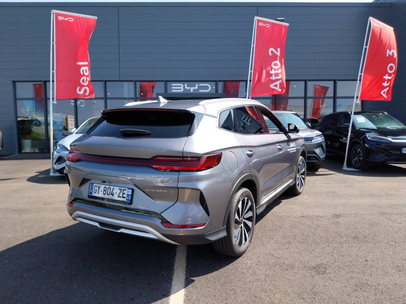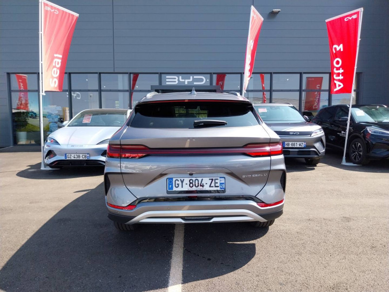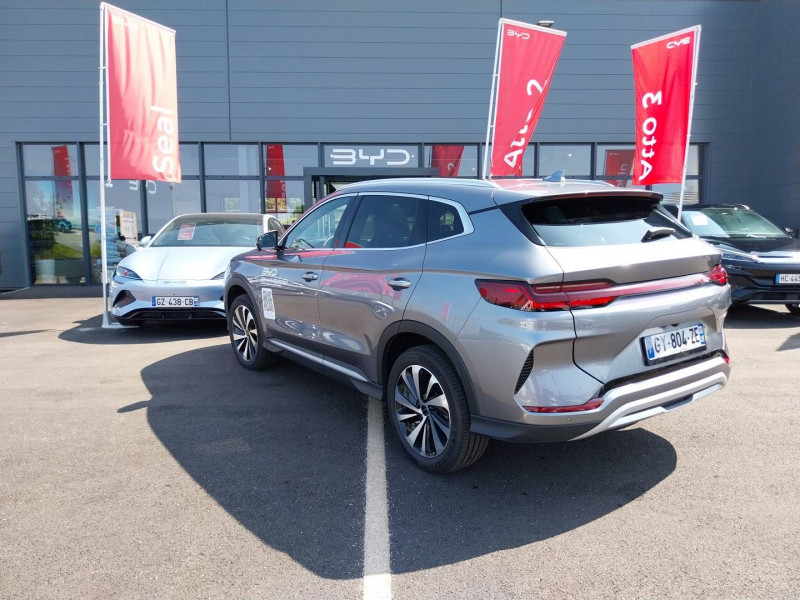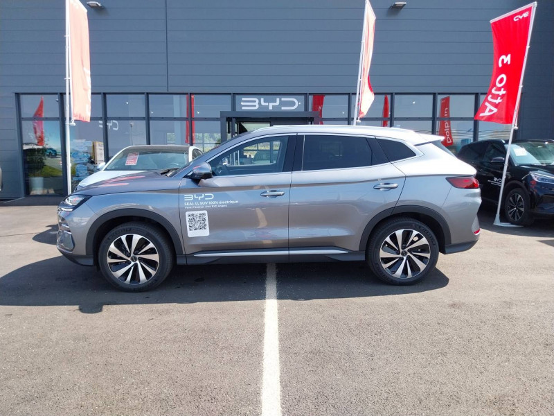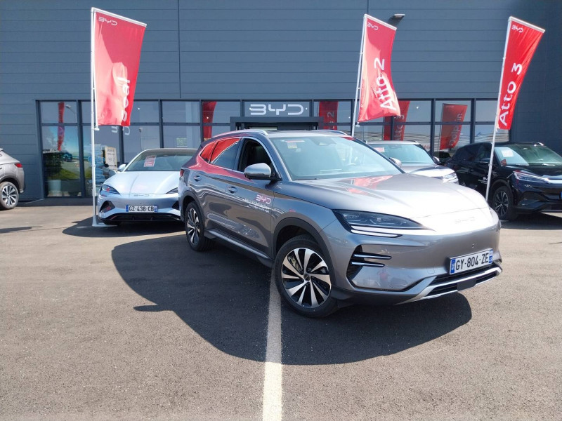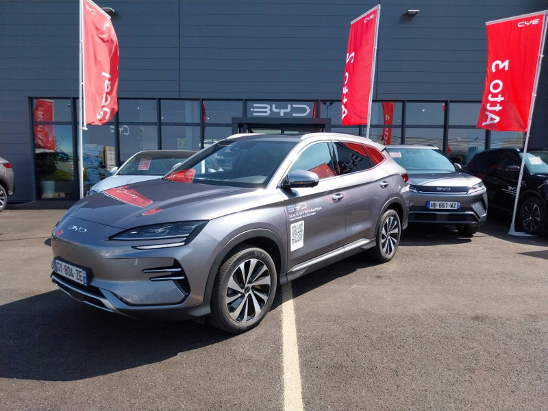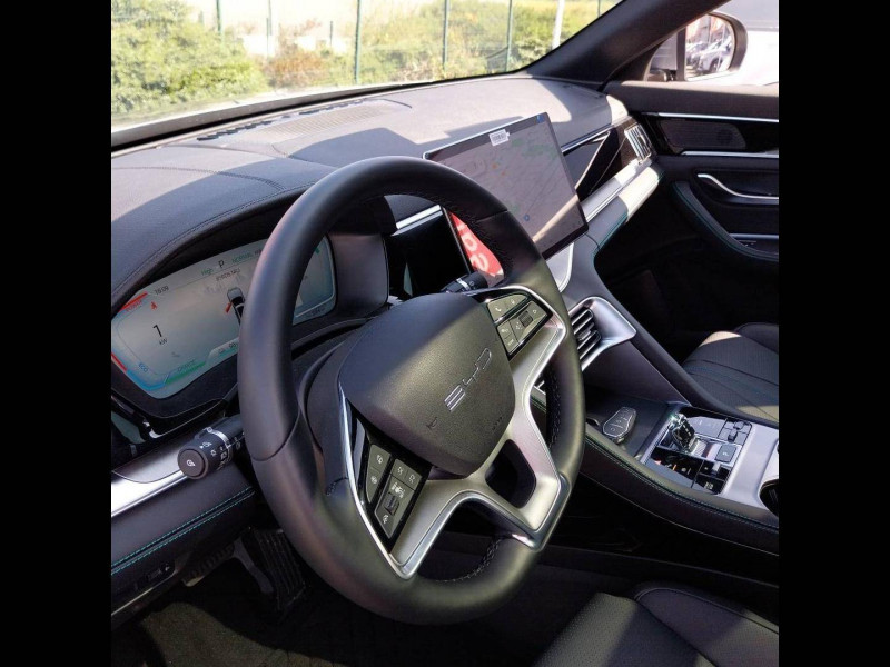 2 x clé intelligente / 4 x lève-vitre à impulsion avec fonction anti-pincement / Accoudoir AR, 2 porte-gobelet / Airbag passager AV avec contacteur de désactivation / Alerte de trafic transversal AR (RCTA) et freinage en cas de trafic transversal AR (RCTB) / Alerte de trafic transversal AV (FCTA) et freinage en cas de trafic transversal AV (FCTB) / Arrêt confort (CST) / Assistance à la sortie de voie (LDA) / Assistance au changement de voie (LCA) / Assistance au maintien sur la voie (LKA) / Assistance d´urgence au maintien dans la voie (ELKA) / Assistance feux de route (HMA) / Assistance hydraulique au freinage (HBA) / Avertissement de collision AR (RCW) / Avertissement de collision AV (FCW) / Avertissement de sortie de voie (LDW) / Avertissement d'ouverture de porte (DOW) / Avertissement prédictif de collision (PCW) / Barres de toit en aluminium / Bouches d'aération AR / Caméra à 360° / Ceinture de sécuritéà limitation de force de siége AR Médian / Chargeur embarqué 11 kW (OBC) / Commande de climatisation à double zone / Commande vocale intelligente - "Hi, BYD" / Connectivité 4G embarquée / Contrôle de descente en pente (HDC) / Contrôle de la dynamique du véhicule (VDC) / Contrôle de maintien en côte (HHC) / DAB+ & FM / Décélération contrôlée pour frein de stationnement (CDP) / Détection d'angle mort (BSD) / Détection de la fatigue du conducteur (DFM) indirecte / Détection de présence d'enfant (CPD) / Distribution électronique de la force de freinage (EBD) / Eclairage d'accompagnement (fonction d'allumage anticipé et d'extinction différée des phares) / Eclairage d'ambiance monochrome / Eclairage de coffre / Eclairages de porte AV à LED / Eclairages de sol dans les rétroviseurs extérieurs / Eclairages de sol de siège AV / Ecran tactile rotatif électrique 12,8" / Filtre à air PM2.5 / Fonction Véhicule à chargement (V2L) / Freinage d'urgence automatique (AEB) / Frein de stationnement électronique (EPB) / Indicateur de charge à LED / ISOFIX et i-Size, siège passager AV et sièges AR externes / Jantes en alliage 19" bicolores avec pneus 235/50 R19 / Lampe de lecture à LED AV / Lampe de lecture à LED latérale AR / Modes de conduite : Eco, Normal, Sport, Neige / Pare-brise AV, protection anti-UV, isolation thermique, insonorisation / Pare-soleil AV avec éclairage du miroir / Pompe à chaleur / Ports USB AR, 2 x 18 W type C / Ports USB AV, 1 x 18 W type C, 1 x 60 W type C / Prévention de sortie de voie (LDP) / Régulateur de vitesse adaptatif (ACC) et régulateur de vitesse intelligent (ICC) / Rétroviseur à atténuation automatique / Service Cloud - Appli BYD / Servo-frein hydraulique (HBB) / Siège conducteur avec appuie-tête intégré / Siège conducteur, réglable électriquement, 8 directions, mémoire de position / Siège conducteur, ventilé, chauffant, réglage mémorisé / Siège passager AV avec appuie-tête intégré / Siège passager AV avec ventilation et chauffage / Siège passager AV réglable éclectriquement, 4 directions / Sièges AR, appuie-tête réglable manuellement / Sièges AR rabattables séparément - 40:60 / Sièges en similicuir vegan / Système antipatinage (TCS) / Système de contrôle anti-renversement (RMI) / Système de priorité au freinage sur les pédales (BOS) / Système de verrouillage automatique / Tableau de bord LCD 12,3" tout TFT / Tablette AR du coffre / Toit ouvrant panoramique avec fonction anti-pincement, avec pare-soleil à réglage électrique / Verrouillage de sécurité enfant mécanique / Vitres AR et lunette AR, vitrage surteinté / Volant chauffant /