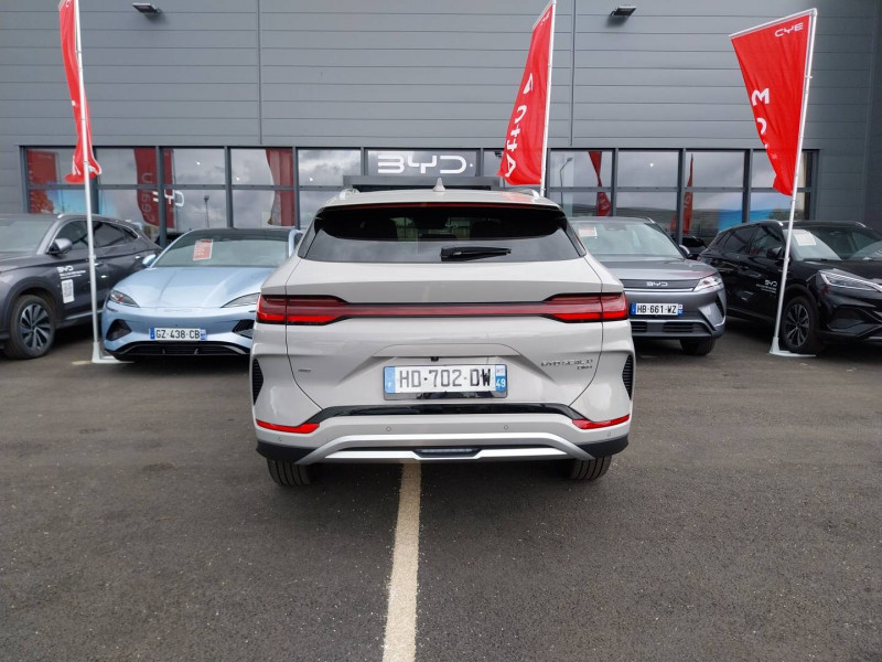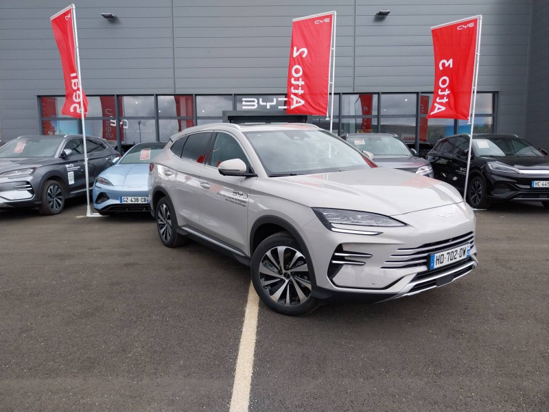 Sièges AR rabattables séparément - 40:60 / Système antipatinage (TCS) / Siège passager AV avec ventilation et chauffage / Siège passager AV réglable éclectriquement, 4 directions / Sièges AR, appuie-tête réglable manuellement / Système audio Infinity à 10 HP / Système de contrôle anti-renversement (RMI) / Système de priorité au freinage sur les pédales (BOS) / Système de purification d'air PM2.5 / Système de verrouillage automatique / Tableau de bord LCD 12,3" tout TFT / Tablette AR du coffre / Toit ouvrant panoramique avec fonction anti-pincement, avec pare-soleil à réglage électrique / Verrouillage de sécurité enfant mécanique / Vitres AR et lunette AR, vitrage surteinté / Volant chauffant / Ports USB AV, 1 x 18 W type C, 1 x 60 W type C / Prévention de sortie de voie (LDP) / Régulateur de vitesse adaptatif (ACC) et régulateur de vitesse intelligent (ICC) / Rétroviseur à atténuation automatique / Commande vocale intelligente - "Hi, BYD" / Connectivité 4G embarquée / Contrôle de descente en pente (HDC) / Contrôle de la dynamique du véhicule (VDC) / Contrôle de maintien en côte (HHC) / DAB+ & FM / Décélération contrôlée pour frein de stationnement (CDP) / Détection d'angle mort (BSD) / Détection de la fatigue du conducteur (DFM) indirecte / 2 x clé intelligente / 4 x lève-vitre à impulsion avec fonction anti-pincement / Accoudoir AR, 2 porte-gobelets / Airbag passager AV avec contacteur de désactivation / Alerte de trafic transversal AR (RCTA) et freinage en cas de trafic transversal AR (RCTB) / Alerte de trafic transversal AV (FCTA) et freinage en cas de trafic transversal AV (FCTB) / Arrêt confort (CST) / Assistance à la sortie de voie (LDA) / Assistance au changement de voie (LCA) / Assistance au maintien sur la voie (LKA) / Assistance d'urgence au maintien dans la voie (ELKA) / Assistance feux de route (HMA) / Assistance hydraulique au freinage (HBA) / Avertissement de collision AR (RCW) / Avertissement de collision AV (FCW) / Avertissement de sortie de voie (LDW) / Avertissement d'ouverture de porte (DOW) / Avertissement prédictif de collision (PCW) / Barres de toit en aluminium / Bouches d'aération AR / Caméra à 360° / Ceinture de sécuritéà limitation de force de siége AR Médian / Charge sans fil de smartphone 2x15W / Chargeur embarqué 11 kW (OBC) / Détection de présence d'enfant (CPD) / Distribution électronique de la force de freinage (EBD) / Eclairage ambiant, multicolore, réagissant au rythme / Eclairage d'accompagnement (fonction d'allumage anticipé et d'extinction différée des phares) / Eclairage d'accueil dynamique / Eclairages de porte AV à LED / Eclairages de sol de siège AV / Eclairages de sol par les rétroviseurs extérieurs / Ecran tactile rotatif électrique 15,6" / Filtre à air PM2.5 / Fonction Auto Hold du freinage / Fonction Véhicule à chargement (V2L) / Freinage d'urgence automatique (AEB) / Frein de stationnement électronique (EPB) / ISOFIX et i-Size, siège passager AV et sièges AR externes / Jantes en alliage 19" bicolores avec pneus 235/50 R19 / Lampe de lecture à LED AV / Lampe de lecture à LED latérale AR / Modes de conduite : Eco, Normal, Sport, Neige / Pare-brise AV, essuie-glaces a détection de pluie / Pare-brise AV, protection anti-UV, isolation thermique, insonorisation / Pare-soleil AV avec éclairage du miroir / Ports USB AR, 2 x 18 W type C / Service Cloud - Appli BYD / Servo-frein hydraulique (HBB) / Siège conducteur avec appuie-tête intégré / Siège conducteur, réglable électriquement, 8 directions, mémoire de position / Siège conducteur, ventilé, chauffant, réglage mémorisé / Siège passager AV avec appuie-tête intégré /