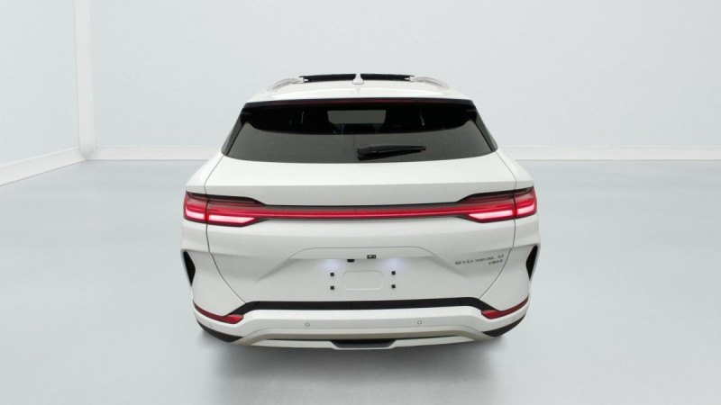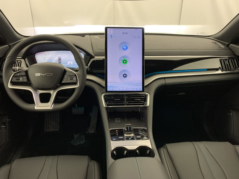 Barres de toit en aluminium / Eclairages de sol dans les rétroviseurs extérieurs / Tablette AR du coffre / Sièges AR rabattables séparément - 40:60 / Lampe de lecture à LED AV / Lampe de lecture à LED latérale AR / 4 x lève-vitre à impulsion avec fonction anti-pincement / Rétroviseur à atténuation automatique / Filtre à air PM2.5 / Système de purification d'air PM2.5 / Ecran tactile rotatif électrique 15,6" / Airbag passager AV avec contacteur de désactivation / Détection d'angle mort (BSD) / Système antipatinage (TCS) / Distribution électronique de la force de freinage (EBD) / Arrêt confort (CST) / Contrôle de descente en pente (HDC) / Avertissement d'ouverture de porte (DOW) / Régulateur de vitesse adaptatif (ACC) et régulateur de vitesse intelligent (ICC) / Avertissement de collision AV (FCW) / Freinage d'urgence automatique (AEB) / Avertissement de collision AR (RCW) / Assistance au maintien sur la voie (LKA) / Assistance au changement de voie (LCA) / Verrouillage de sécurité enfant mécanique / Chargeur embarqué 11 kW (OBC) / Eclairage d'accueil dynamique / Siège conducteur avec appuie-tête intégré / Siège passager AV avec ventilation et chauffage / Siège passager AV avec appuie-tête intégré / Tableau de bord LCD 12,3" tout TFT / Système de verrouillage automatique / Avertissement de sortie de voie (LDW) / Assistance hydraulique au freinage (HBA) / Contrôle de la dynamique du véhicule (VDC) / Contrôle de maintien en côte (HHC) / Décélération contrôlée pour frein de stationnement (CDP) / Eclairage d'accompagnement (fonction d'allumage anticipé et d'extinction différée des phares) / Caméra à 360° / Frein de stationnement électronique (EPB) / Alerte de trafic transversal AV (FCTA) et freinage en cas de trafic transversal AV (FCTB) / Alerte de trafic transversal AR (RCTA) et freinage en cas de trafic transversal AR (RCTB) / Assistance feux de route (HMA) / Toit ouvrant panoramique avec fonction anti-pincement, avec pare-soleil à réglage électrique / Jantes en alliage 19" bicolores avec pneus 235/50 R19 / Pare-brise AV, protection anti-UV, isolation thermique, insonorisation / Pare-brise AV, essuie-glaces a détection de pluie / Vitres AR et lunette AR, vitrage surteinté / Volant chauffant / Siège conducteur, réglable électriquement, 8 directions, mémoire de position / Siège conducteur, ventilé, chauffant, réglage mémorisé / Siège passager AV réglable éclectriquement, 4 directions / Sièges AR, appuie-tête réglable manuellement / Eclairage ambiant, multicolore, réagissant au rythme / Eclairages de sol de siège AV / Eclairages de porte AV à LED / Pare-soleil AV avec éclairage du miroir / Bouches d'aération AR / Accoudoir AR, 2 porte-gobelet / DAB+ & FM / Système audio Infinity à 10 HP / Commande vocale intelligente - "Hi, BYD" / Connectivité 4G embarquée / Service Cloud - Appli BYD / Ports USB AV, 1 x 18 W type C, 1 x 60 W type C / Ports USB AR, 2 x 18 W type C / Charge sans fil de smartphone / Ceinture de sécuritéà limitation de force de siége AR Médian / ISOFIX et i-Size, siège passager AV et sièges AR externes / Détection de présence d'enfant (CPD) / Modes de conduite : Eco, Normal, Sport, Neige / 2 x clé intelligente / Détection de la fatigue du conducteur (DFM) indirecte / Assistance d´urgence au maintien dans la voie (ELKA) / Avertissement prédictif de collision (PCW) / Assistance à la sortie de voie (LDA) / Prévention de sortie de voie (LDP) / Fonction Auto Hold du freinage / Servo-frein hydraulique (HBB) / Système de contrôle anti-renversement (RMI) / Système de priorité au freinage sur les pédales (BOS) / Fonction Véhicule à chargement (V2L) /