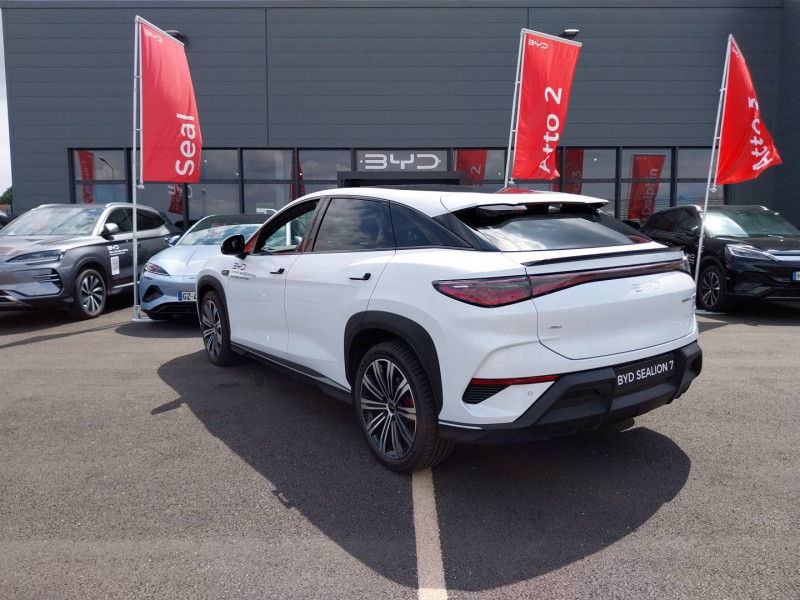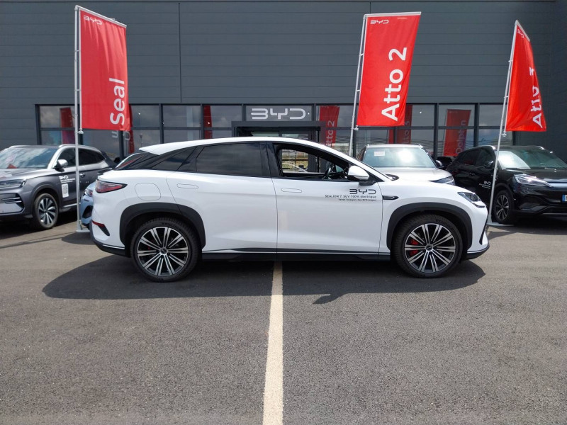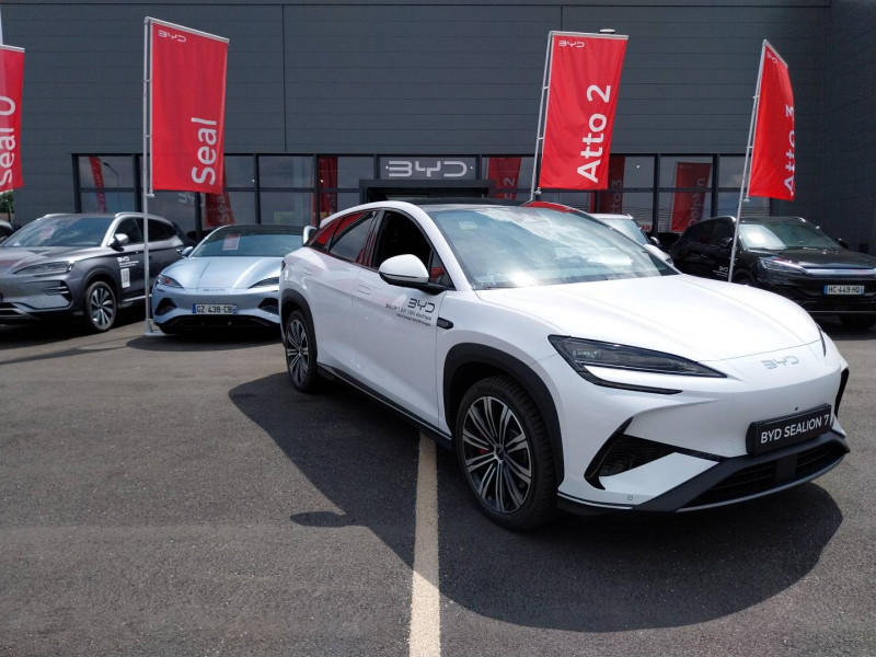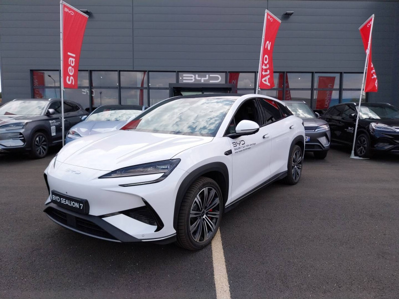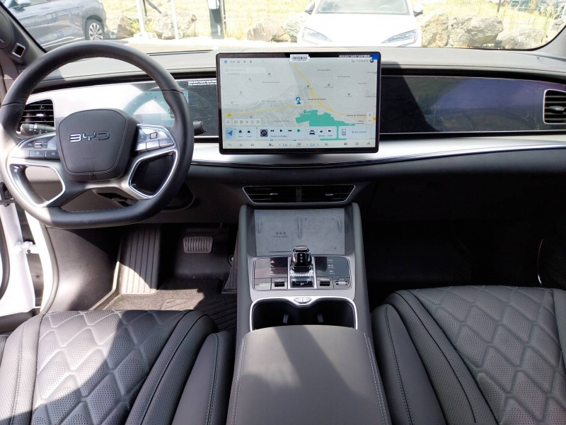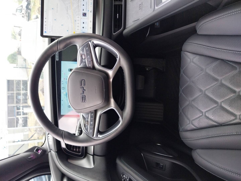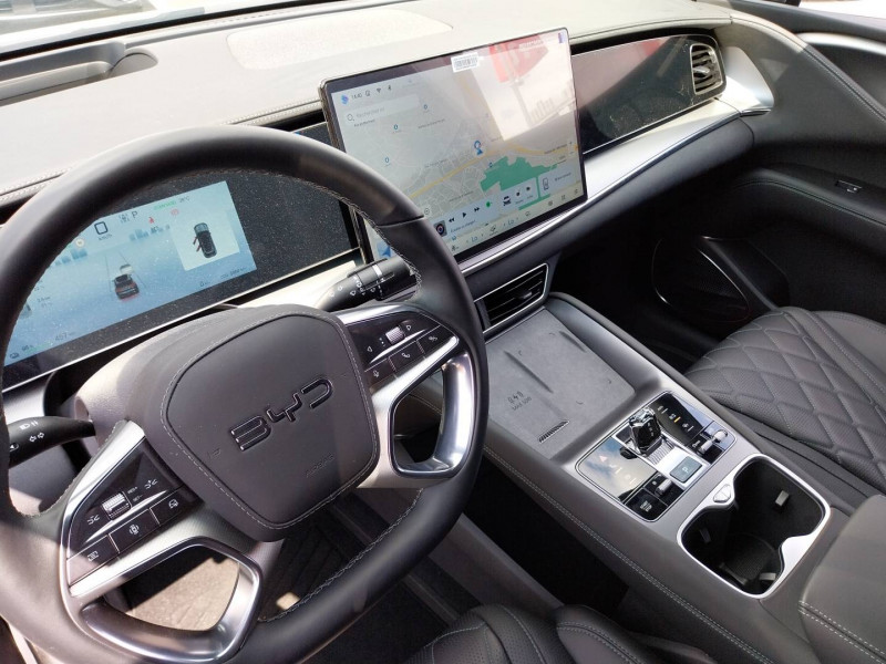 2 x clé intelligente et 1 x carte-clé NFC / 4 x lève-vitre à impulsion avec fonction anti-pincement / Accoudoir AR, 2 porte-gobelets / Aide d'urgence au maintien dans la voie (ELKA) / Airbag passager AV, contacteur de désactivation / Alarme de ceintures de sécurité AV et AR non bouclées / Alerte de trafic transversal AR (RCTA) et freinage en cas de trafic transversal AR (RCTB) / Alerte de trafic transversal AV (FCTA) et freinage en cas de trafic transversal AV (FCTB) / Assistance feux de route (HMA) / Assistance hydraulique au freinage (HBA) / Avertissement de collision AR (RCW) / Avertissement de collision AV (FCW) / Avertissement de distraction du conducteur (DDW) / Avertissement de sortie de voie (LDW) / Avertissement d'ouverture de porte (DOW) / Boîte de vitesse automatique à variation continue / Bouches d'aération AR / Caméra de vue à 360° / Charge sans fil de smartphone 50W / Chargeur embarqué 11kW (OBC) / Clignotants dynamiques / Coffre AV / Coloris d'habitacle - Noir ou Tahiti blue / Commande de centrage dans la voie (LCC) / Commande de climatisation à double zone / Commande intelligente de feux de route (IHBC) / Commande vocale intelligente - "Hi, BYD", commande vocale quadri-zone / Connectivité 4G embarquée / Contrôle de la dynamique du véhicule (VDC) / Contrôle de limite de vitesse intelligent (ISLC) / Contrôle de maintien en côte (HHC) / DAB et FM / Décélération contrôlée pour frein de stationnement (CDP) / Détection d'angle mort (BSD) / Détection de présence d'enfant (CPD) / Distribution électronique de la force de freinage (EBD) / Eclairage d'accompagnement (fonction d'allumage anticipé et d'extinction différée des phares) / Eclairage d'accueil dynamique / Eclairage d'ambiance multicolore / Eclairage de boîte à gants / Eclairage de coffre / Eclairage de la console centrale / Eclairages à LED des quatre portes / Eclairages de sol de siège AV, multicolores / Eclairages de sol par les rétroviseurs extérieurs / Ecran tactile rotatif électrique 15,6" / Feu de virage / Fonction de facturation de rendez-vous / Fonction Véhicule à chargement (V2L) / Freinage d'urgence automatique (AEB) / Frein de stationnement électrique (EPB) / Générateur d'ions négatifs / Gestion de la fatigue du conducteur (DFM) directe / Hayon électrique, fonction d'ouverture par coup de pied / Indicateur de charge multicolore à LED / ISOFIX et i-Size, siège passager AV et sièges AR externes / Lampes de lecture AV à LED / Lampes de lecture latérales AR à LED / Lunette AR, chauffante, désembuage, dégivrage / Lunette AR, vitrage surteintée / Mode Easy Access / Modes de conduite : Éco, Confort, Sport, Neige / Navigation / Pare-brise AV, essuie-glaces à détection de pluie, désembuage, dégivrage / Pare-brise AV et vitres AV, protection anti-UV, isolation thermique, insonorisation / Pare-soleil AV avec éclairage du miroir / Pneus 245/45 R20 / Point d'accès Wi-Fi dans la voiture / Pompe à chaleur / Ports USB AR, 1x 18W Type C, 1x 60W Type C / Ports USB AV, 1 x 18 W type C, 1 x 60 W type C / Rétroviseur à atténuation automatique / Rétroviseurs extérieurs, réglables et rabattables électriquement, chauffants, inclinaison auto. en marche AR, mémoire de position / Service Cloud - Appli BYD / Siège conducteur, 2 x pochettes pour dossier / Siège conducteur avec appuie-tête intégré / Siège conducteur, réglable électriquement, 8 directions, mémoire de position / Siège conducteur, soutien de jambes à commande électrique / Siège conducteur, soutien lombaire à commande électrique, 4 directions / Siège conducteur, ventilé, chauffant, réglage mémorisé / Siège passager avant, 2 x pochettes pour dossier / Siège passager AV avec appuie-tête intégré / Siège passager AV avec ventilation et chauffage / Siège passager AV, réglable électriquement, 6 directions / Sièges AR, angle de dossier réglable manuellement / Sièges AR, appuie-tête réglable manuellement / Sièges AR rabattables séparément - 40:60 / Système antipatinage (TCS) / Système audio Dynaudio, 12 HP / Système de freinage anti-blocage (ABS) / Système de purification d'air PM2.5 / Tableau de bord tout LCD 10,25" TFT / Toit panoramique, pare-soleil à réglage électrique / Verrouillage de sécurité enfant électronique / Vitres AR, protection anti-UV, isolation thermique, vitrage surteinté /