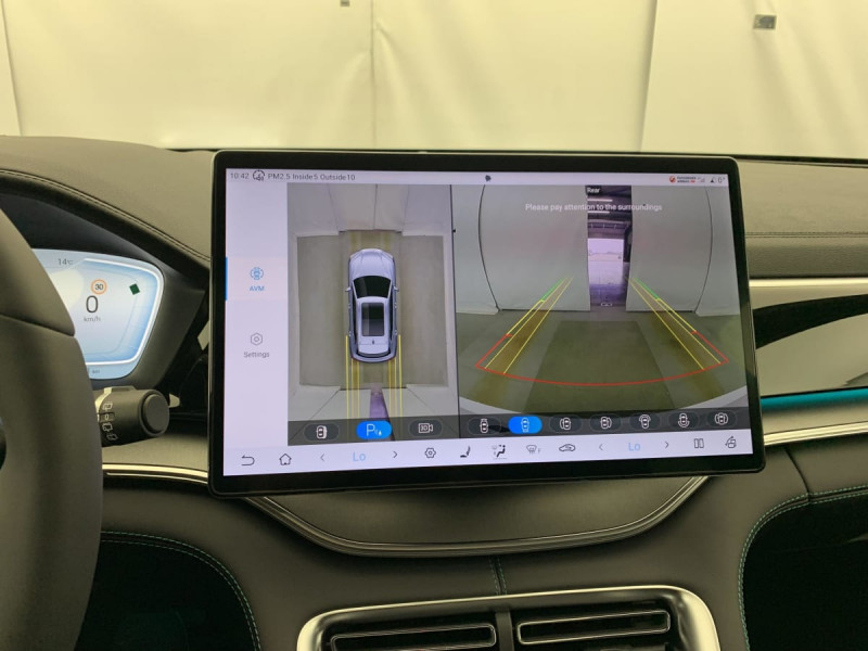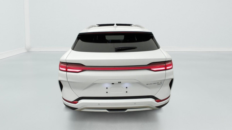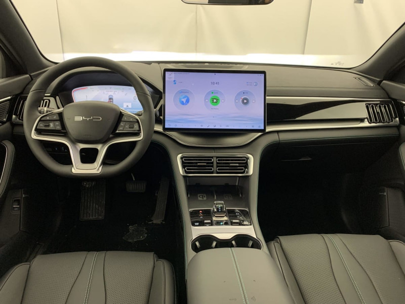 Barres de toit en aluminium / Eclairages de sol par les rétroviseurs extérieurs / Tablette AR du coffre / Sièges AR rabattables séparément - 40:60 / Lampe de lecture à LED AV / Lampe de lecture à LED latérale AR / 4 x lève-vitre à impulsion avec fonction anti-pincement / Rétroviseur à atténuation automatique / Ecran tactile rotatif électrique 15,6" / Airbag passager AV avec contacteur de désactivation / Détection d'angle mort (BSD) / Système antipatinage (TCS) / Distribution électronique de la force de freinage (EBD) / Arrêt confort (CST) / Contrôle de descente en pente (HDC) / Avertissement d'ouverture de porte (DOW) / Régulateur de vitesse adaptatif (ACC) et régulateur de vitesse intelligent (ICC) / Avertissement de collision AV (FCW) / Freinage d'urgence automatique (AEB) / Avertissement de collision AR (RCW) / Assistance au maintien sur la voie (LKA) / Assistance au changement de voie (LCA) / Verrouillage de sécurité enfant mécanique / Chargeur embarqué 11 kW (OBC) / Eclairage d'accueil dynamique / Siège conducteur avec appuie-tête intégré / Siège passager AV avec ventilation et chauffage / Siège passager AV avec appuie-tête intégré / Tableau de bord LCD 12,3" tout TFT / Système de verrouillage automatique / Avertissement de sortie de voie (LDW) / Assistance hydraulique au freinage (HBA) / Contrôle de la dynamique du véhicule (VDC) / Contrôle de maintien en côte (HHC) / Décélération contrôlée pour frein de stationnement (CDP) / Eclairage d'accompagnement (fonction d'allumage anticipé et d'extinction différée des phares) / Caméra à 360° / Frein de stationnement électronique (EPB) / Alerte de trafic transversal AV (FCTA) et freinage en cas de trafic transversal AV (FCTB) / Alerte de trafic transversal AR (RCTA) et freinage en cas de trafic transversal AR (RCTB) / Assistance feux de route (HMA) / Toit ouvrant panoramique avec fonction anti-pincement, avec pare-soleil à réglage électrique / Jantes en alliage 19" bicolores avec pneus 235/50 R19 / Pare-brise AV, protection anti-UV, isolation thermique, insonorisation / Pare-brise AV, essuie-glaces a détection de pluie / Vitres AR et lunette AR, vitrage surteinté / Volant chauffant / Siège conducteur, réglable électriquement, 8 directions, mémoire de position / Siège conducteur, ventilé, chauffant, réglage mémorisé / Siège passager AV réglable éclectriquement, 4 directions / Sièges AR, appuie-tête réglable manuellement / Eclairage ambiant, multicolore, réagissant au rythme / Eclairages de sol de siège AV / Eclairages de porte AV à LED / Pare-soleil AV avec éclairage du miroir / Bouches d'aération AR / Accoudoir AR, 2 porte-gobelets / DAB+ & FM / Système audio Infinity à 10 HP / Commande vocale intelligente - "Hi, BYD" / Service Cloud - Appli BYD / Ports USB AV, 1 x 18 W type C, 1 x 60 W type C / Ports USB AR, 2 x 18 W type C / Charge sans fil de smartphone 2x15W / Ceinture de sécuritéà limitation de force de siége AR Médian / ISOFIX et i-Size, siège passager AV et sièges AR externes / Détection de présence d'enfant (CPD) / Modes de conduite : Eco, Normal, Sport, Neige / 2 x clé intelligente / Détection de la fatigue du conducteur (DFM) indirecte / Assistance d'urgence au maintien dans la voie (ELKA) / Avertissement prédictif de collision (PCW) / Assistance à la sortie de voie (LDA) / Prévention de sortie de voie (LDP) / Fonction Auto Hold du freinage / Système de contrôle anti-renversement (RMI) / Système de priorité au freinage sur les pédales (BOS) / Fonction Véhicule à chargement (V2L) /