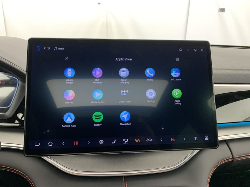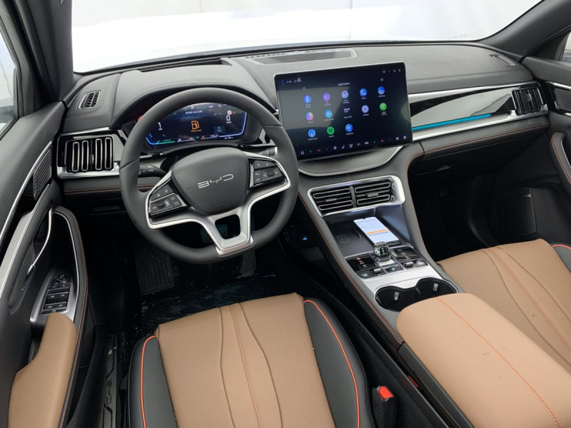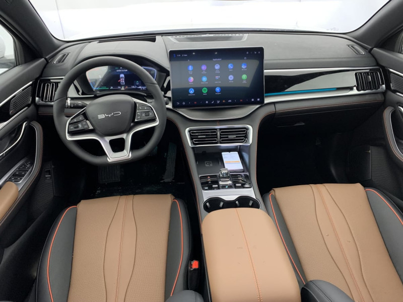 Barres de toit en aluminium / Eclairages de sol par les rétroviseurs extérieurs / Tablette AR du coffre / Sièges AR rabattables séparément - 40:60 / Lampe de lecture à LED AV / Lampe de lecture à LED latérale AR / 4 x lève-vitre à impulsion avec fonction anti-pincement / Rétroviseur à atténuation automatique / Ecran tactile rotatif électrique 15,6" / Airbag passager AV avec contacteur de désactivation / Détection d'angle mort (BSD) / Système antipatinage (TCS) / Distribution électronique de la force de freinage (EBD) / Arrêt confort (CST) / Contrôle de descente en pente (HDC) / Avertissement d'ouverture de porte (DOW) / Régulateur de vitesse adaptatif (ACC) et régulateur de vitesse intelligent (ICC) / Avertissement de collision AV (FCW) / Freinage d'urgence automatique (AEB) / Avertissement de collision AR (RCW) / Assistance au maintien sur la voie (LKA) / Assistance au changement de voie (LCA) / Verrouillage de sécurité enfant mécanique / Chargeur embarqué 11 kW (OBC) / Eclairage d'accueil dynamique / Siège conducteur avec appuie-tête intégré / Siège passager AV avec ventilation et chauffage / Siège passager AV avec appuie-tête intégré / Tableau de bord LCD 12,3" tout TFT / Système de verrouillage automatique / Avertissement de sortie de voie (LDW) / Assistance hydraulique au freinage (HBA) / Contrôle de la dynamique du véhicule (VDC) / Contrôle de maintien en côte (HHC) / Décélération contrôlée pour frein de stationnement (CDP) / Eclairage d'accompagnement (fonction d'allumage anticipé et d'extinction différée des phares) / Caméra à 360° / Frein de stationnement électronique (EPB) / Alerte de trafic transversal AV (FCTA) et freinage en cas de trafic transversal AV (FCTB) / Alerte de trafic transversal AR (RCTA) et freinage en cas de trafic transversal AR (RCTB) / Assistance feux de route (HMA) / Toit ouvrant panoramique avec fonction anti-pincement, avec pare-soleil à réglage électrique / Jantes en alliage 19" bicolores avec pneus 235/50 R19 / Pare-brise AV, protection anti-UV, isolation thermique, insonorisation / Pare-brise AV, essuie-glaces a détection de pluie / Vitres AR et lunette AR, vitrage surteinté / Volant chauffant / Siège conducteur, réglable électriquement, 8 directions, mémoire de position / Siège conducteur, ventilé, chauffant, réglage mémorisé / Siège passager AV réglable éclectriquement, 4 directions / Sièges AR, appuie-tête réglable manuellement / Eclairage ambiant, multicolore, réagissant au rythme / Eclairages de sol de siège AV / Eclairages de porte AV à LED / Pare-soleil AV avec éclairage du miroir / Bouches d'aération AR / Accoudoir AR, 2 porte-gobelets / DAB+ & FM / Système audio Infinity à 10 HP / Commande vocale intelligente - "Hi, BYD" / Service Cloud - Appli BYD / Ports USB AV, 1 x 18 W type C, 1 x 60 W type C / Ports USB AR, 2 x 18 W type C / Charge sans fil de smartphone 2x15W / Ceinture de sécuritéà limitation de force de siége AR Médian / ISOFIX et i-Size, siège passager AV et sièges AR externes / Détection de présence d'enfant (CPD) / Modes de conduite : Eco, Normal, Sport, Neige / Détection de la fatigue du conducteur (DFM) indirecte / Assistance d'urgence au maintien dans la voie (ELKA) / Avertissement prédictif de collision (PCW) / Assistance à la sortie de voie (LDA) / Prévention de sortie de voie (LDP) / Fonction Auto Hold du freinage / Servo-frein hydraulique (HBB) / Système de contrôle anti-renversement (RMI) / Système de priorité au freinage sur les pédales (BOS) / Fonction Véhicule à chargement (V2L) /