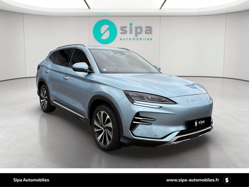 2 x clé intelligente / 4 x lève-vitre à impulsion avec fonction anti-pincement / Accoudoir AR, 2 porte-gobelets / Airbag passager AV avec contacteur de désactivation / Alerte de trafic transversal AR (RCTA) et freinage en cas de trafic transversal AR (RCTB) / Alerte de trafic transversal AV (FCTA) et freinage en cas de trafic transversal AV (FCTB) / Arrêt confort (CST) / Assistance à la sortie de voie (LDA) / Assistance au changement de voie (LCA) / Assistance au maintien sur la voie (LKA) / Assistance d'urgence au maintien dans la voie (ELKA) / Assistance feux de route (HMA) / Assistance hydraulique au freinage (HBA) / "ATTENTION" - Options incomplètes / Avertissement de collision AR (RCW) / Avertissement de collision AV (FCW) / Avertissement de sortie de voie (LDW) / Avertissement d'ouverture de porte (DOW) / Avertissement prédictif de collision (PCW) / Barres de toit en aluminium / Bouches d'aération AR / Caméra à 360° / Ceinture de sécuritéà limitation de force de siége AR Médian / Charge sans fil de smartphone 2x15W / Chargeur embarqué 11 kW (OBC) / Commande de climatisation à double zone / Commande vocale intelligente - "Hi, BYD" / Connectivité 4G embarquée / Contrôle de descente en pente (HDC) / Contrôle de la dynamique du véhicule (VDC) / Contrôle de maintien en côte (HHC) / DAB+ & FM / Décélération contrôlée pour frein de stationnement (CDP) / Détection d'angle mort (BSD) / Détection de la fatigue du conducteur (DFM) indirecte / Détection de présence d'enfant (CPD) / Distribution électronique de la force de freinage (EBD) / Eclairage ambiant, multicolore, réagissant au rythme / Eclairage d'accompagnement (fonction d'allumage anticipé et d'extinction différée des phares) / Eclairage d'accueil dynamique / Eclairage de coffre / Eclairages de porte AV à LED / Eclairages de sol de siège AV / Eclairages de sol par les rétroviseurs extérieurs / Ecran tactile rotatif électrique 15,6" / Filtre à air PM2.5 / Fonction Auto Hold du freinage / Fonction Vehicle-to-Load (V2L: pour alimenter les apareils externes) / Freinage d'urgence automatique (AEB) / Frein de stationnement électronique (EPB) / Indicateur de charge à LED / ISOFIX et i-Size, siège passager AV et sièges AR externes / Jantes en alliage 19" bicolores avec pneus 235/50 R19 / Lampe de lecture à LED AV / Lampe de lecture à LED latérale AR / Modes de conduite : Eco, Normal, Sport, Neige / Pare-brise AV, essuie-glaces a détection de pluie / Pare-brise AV, protection anti-UV, isolation thermique, insonorisation / Pare-soleil AV avec éclairage du miroir / Ports USB AR, 2 x 18 W type C / Ports USB AV, 1 x 18 W type C, 1 x 60 W type C / Prévention de sortie de voie (LDP) / Régulateur de vitesse adaptatif (ACC) et régulateur de vitesse intelligent (ICC) / Rétroviseur à atténuation automatique / Service Cloud - Appli BYD / Servo-frein hydraulique (HBB) / Siège conducteur avec appuie-tête intégré / Siège conducteur, réglable électriquement, 8 directions, mémoire de position / Siège conducteur, ventilé, chauffant, réglage mémorisé / Siège passager AV avec appuie-tête intégré / Siège passager AV avec ventilation et chauffage / Siège passager AV réglable éclectriquement, 4 directions / Sièges AR, appuie-tête réglable manuellement / Sièges AR rabattables séparément - 40:60 / Sièges en similicuir vegan / Système antipatinage (TCS) / Système audio Infinity à 10 HP / Système de contrôle anti-renversement (RMI) / Système de priorité au freinage sur les pédales (BOS) / Système de purification d'air PM2.5 / Système de verrouillage automatique / Tableau de bord LCD 12,3" tout TFT / Tablette AR du coffre / Toit ouvrant panoramique avec fonction anti-pincement, avec pare-soleil à réglage électrique / Verrouillage de sécurité enfant mécanique / Vitres AR et lunette AR, vitrage surteinté / Volant chauffant