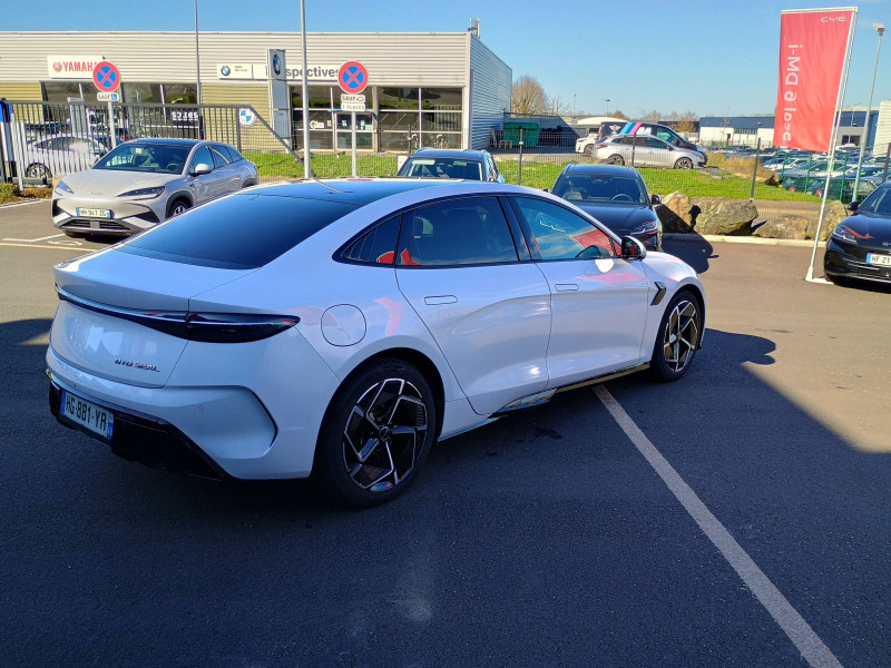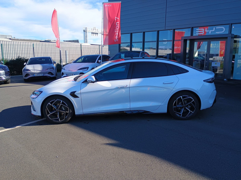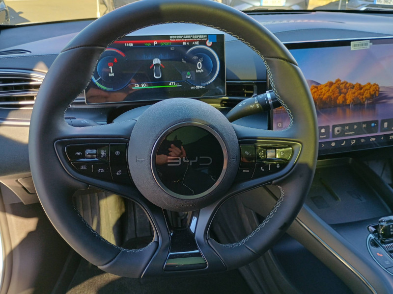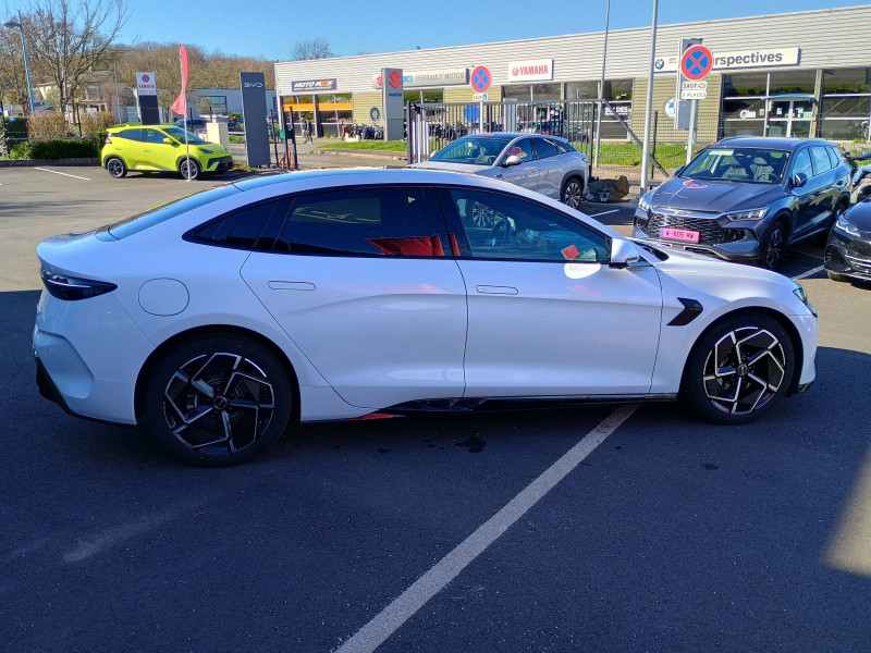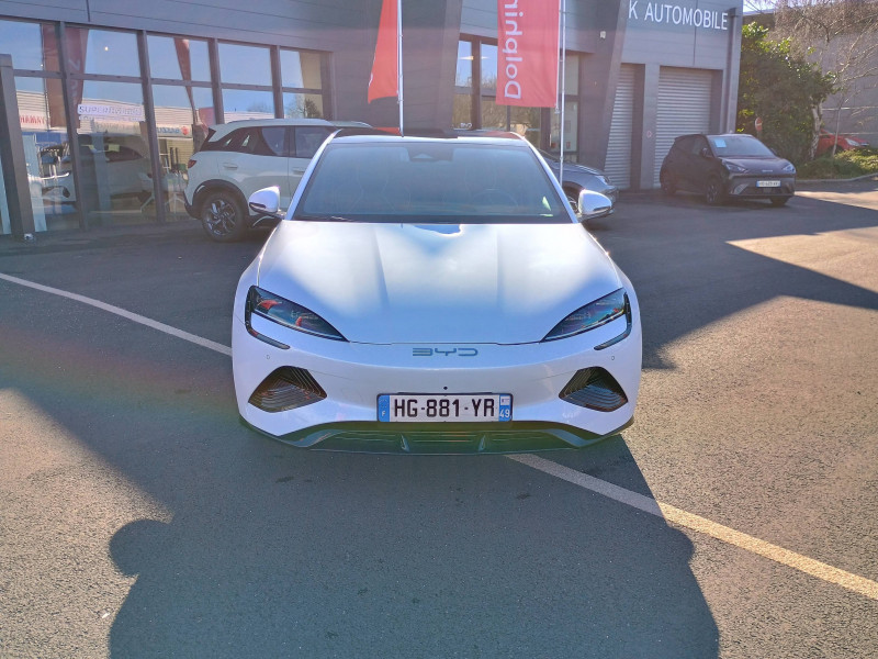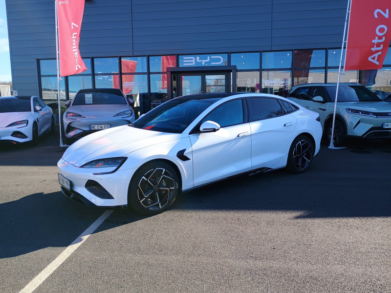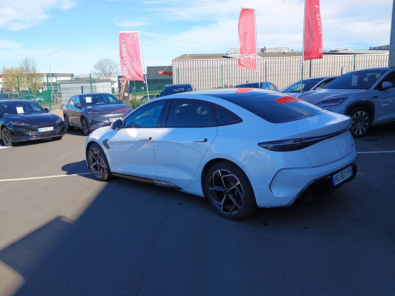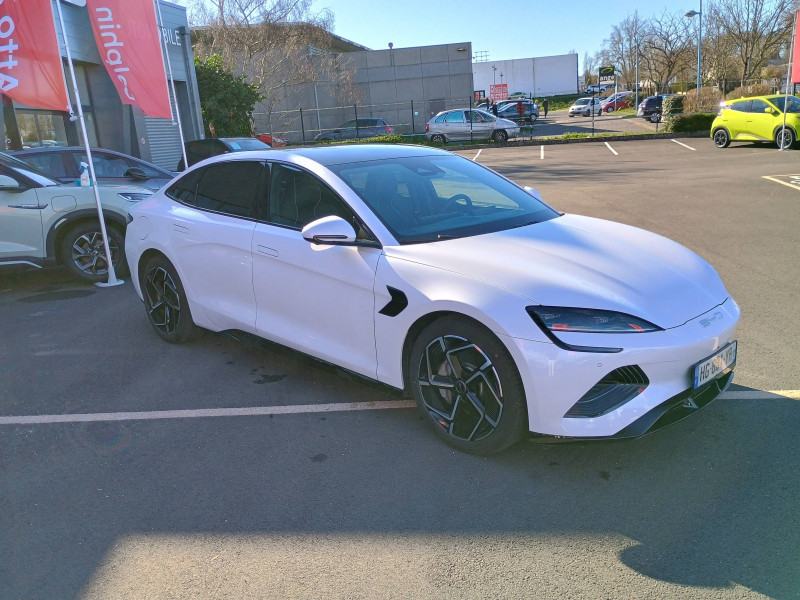 2 x clé intelligente et 1 x carte-clé NFC / 2 x porte-gobelets AV 2 x porte-gobelets AR / Aide à la commande vocale - "Hi, BYD" / Aide à la gestion des embouteillages (TJA) / Aide à la sortie de voie (LDA) et avertissement de sortie de voie (LDW) / Aide d'urgence au maintien dans la voie (ELKA) / Airbag passager AV avec contacteur de désactivation / Airbag rideau latéral droit / Airbag rideau latéral gauche / Alerte de trafic transversal AR (RCTA) et freinage en cas de trafic transversal AR (RCTB) / Alerte de trafic transversal AV (FCTA) et freinage en cas de trafic transversal AV (FCTB) / Assistance au changement de voie (LCA) / Avertissement de collision AR (RCW) / Avertissement de collision AV (FCW) / Avertissement de vigilance du conducteur (DAW) / Avertissement d'ouverture de porte (DOW) / Avertissement prédictif de collision (PCW) / Caméra à 360° / Charge sans fil de smartphone 15W / Chargeur embarqué 11kW (OBC) / Coffre AV avec couvercle - 53 L / Commande de climatisation à double zone / Connectivité 4G embarquée / Contrôle de la dynamique du véhicule (VDC) / Détection d'angle mort (BSD) / Détection de présence d'enfant (CPD) / Disque ventilé AR / Disque ventilé AV perforé / Eclairage d'accompagnement (fonction d'allumage anticipé et d'extinction différée des phares) / Eclairage d'ambiance multicolore toutes les portes, tableau de bord et espace AV pour les pieds / Eclairages de sol par les rétroviseurs extérieurs / Ecran tactile rotatif électrique 15,6" / Etriers fixes à AV / Filtre à air PM2.5 / Fonction Véhicule à chargement (V2L) / Freinage d'urgence automatique (AEB) / Frein de stationnement électronique (EPB) / Générateur d'ions négatifs / Informations intelligentes de limite de vitesse (ISLI) et Contrôle intelligent de limite de vitesse (ISLC) / ISOFIX et i-Size, siège passager AV et sièges AR externes / Jantes en alliage 19" bicolores / Maintien automatique du véhicule (AVH) / Modes de conduite : Eco, Normal, Sport, Neige / Pare-brise AV, essuie-glaces a détection de pluie / Pare-brise AV, protection anti-UV, isolation thermique, insonorisation / Pneus 235/45 R19 / Pompe à chaleur / Ports USB AR, 1x 18 W type C / Ports USB AV, 1 x 18 W type C, 1 x 60 W type C / Radio DAB et Radio FM / Régulateur de vitesse adaptatif (ACC) et régulateur de vitesse intelligent (ICC) / Rétroviseur à atténuation automatique / Rétroviseurs extérieurs, réglables et rabattables électriquement, chauffants, inclinaison auto. en marche AR, mémoire de position / Service Cloud - Appli BYD / Siège du conducteur : réglage électrique (8D), réglage électrique du soutien lombaire (4D), ventilation, chauffage, mémoire de position et appuie-tête intégré / Siège passager AV: réglage électrique (6D), ventilation, chauffage et appuie-tête intégré / Sièges AR rabattables séparément - 40:60 / Sièges AR: réglage manuel des appuie-tête / Système antipatinage (TCS) / Système audio Dynaudio, 12 HP / Système de freinage confortable / Système d'entrée et démarrage sans clé / Système de verrouillage automatique / Tableau de bord tout LCD 10.25'' / Verrouillage de sécurité enfant électronique / Vitres AR et lunette AR, vitrage surteinté / / Modèles équivalents : Tesla Model 3 - BMW i4 - Ioniq 6