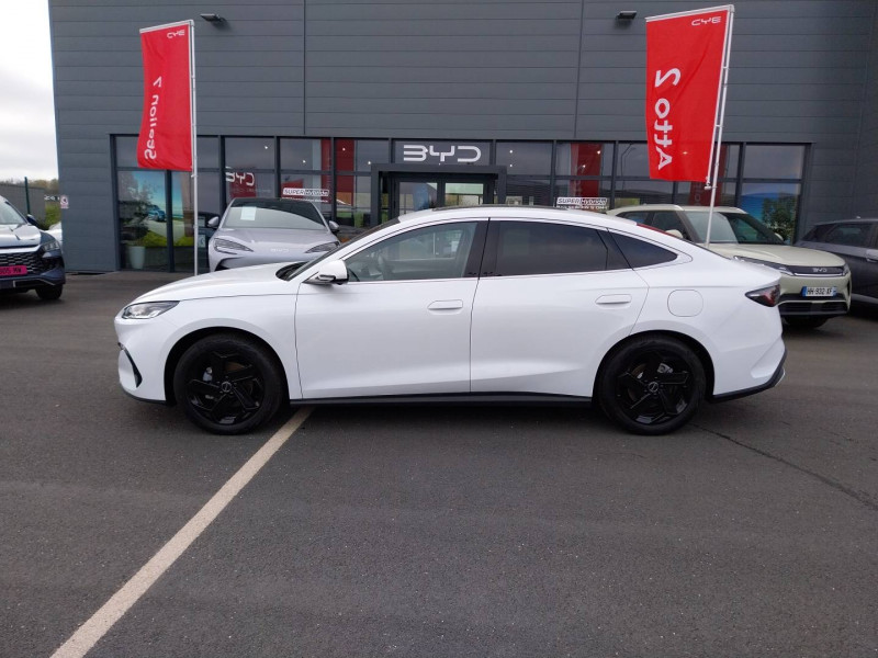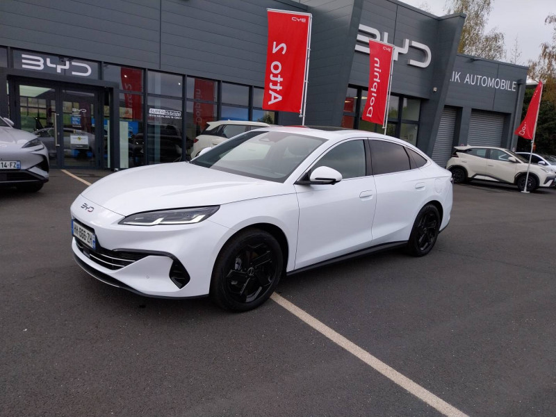 2 x clé intelligente / 4 x lève-vitre à impulsion avec fonction anti-pincement / Accoudoir AR, 2 porte-gobelets / Airbag passager AV avec contacteur de désactivation / Alerte de trafic transversal AR (RCTA) et Freinage en cas de trafic transversal AR (RCTB) / Android Auto et Apple CarPlay / Arrêt confort (CST) / Assistance à la sortie de voie (LDA) / Assistance d'urgence au maintien dans la voie (ELKA) / Assistance hydraulique au freinage (HBA) / Avertissement de collision AR (RCW) / Avertissement de collision AV (FCW) / Avertissement d'ouverture de porte (DOW) / Boîte de vitesse automatique à variation continue / Bouches d'aération AR / Caméra à 360° / Ceinture de sécurité du siège central AR à verrouillage d'urgence / Charge sans fil de smartphone 50W / Chargeur embarqué de 6,6 kW (OBC) / Clé Bluetooth pour smartphone et clé NFC pour smartphone / Commande vocale intelligente - "Hi, BYD" / Connectivité 4G à bord / Contrôle de la dynamique du véhicule (VDC) / Contrôle de limite de vitesse intelligent (ISLC) / Contrôle de maintien en côte (HHC) / Contrôle intelligent des feux de route (IHBC) / DAB+ et FM / Décélération contrôlée pour frein de stationnement (CDP) / Détection d'angle mort (BSD) / Détection de présence d'enfant (CPD) / Distribution électronique de la force de freinage (EBD) / Eclairage ambiant, multicolore, réagissant au rythme / Eclairage d'accompagnement (fonction d'allumage anticipé et d'extinction différée des phares) / Eclairage de coffre / Eclairage de la console centrale / Eclairages de porte AV à LED / Eclairages de sol par les rétroviseurs extérieurs / Effet sonore HiFi, 8 HPs / Entrée sans clé et démarrage sans clé / Filtre à air PM2.5 / Fonction Véhicule à chargement (V2L) / Freinage d'urgence automatique (AEB) / Frein de stationnement électrique (EPB) / Gestion de la fatigue du conducteur (DFM) directe / Informations intelligentes de limite de vitesse (ISLI) / ISOFIX et i-Size, siège passager AV et sièges AR externes / Jantes alliage 18" monochromes / Lampes de lecture à LED AR / Lampes de lecture à LED AV / Lunette AR, chauffante, désembuage, dégivrage / Modes du conduite: Eco, Normal, Sport, Snow / Pare-brise AV, essuie-glaces à détection de pluie / Pare-soleil AV avec éclairage du miroir / Ports USB AR, 2 x 18 W type C / Ports USB AV, 1 x 18 W type C, 1 x 60 W type C / Régulateur de vitesse adaptatif (ACC) et régulateur de vitesse intelligent (ICC) / Rétroviseur à atténuation automatique / Revêtement de toit en tissu / Service Cloud - Appli BYD / Siège conducteur, réglable électriquement, 6 directions / Siège conducteur, ventilé, chauffant, réglage mémorisé / Siège passager AV avec ventilation et chauffage / Siège passager AV, réglable électriquement, 4 directions / Sièges AR, appuie-tête réglable manuellement / Sièges AR rabattables séparément - 40:60 / Sièges AV, appui-tête réglable manuellement / Système de contrôle de traction (TCS) / Système de freinage anti-blocage (ABS) / Système de gestion de la stabilité de la remorque (TSM) / Système de priorité au freinage sur les pédales (BOS) / Système de verrouillage automatique à détection de vitesse / Tableau de bord tout LCD 8.8'' TFT / Toit ouvrant panoramique avec fonction anti-pincement, avec pare-soleil à réglage électrique / Verrouillage de sécurité enfant mécanique / Vitres AR et lunette AR, verre teinté / Volant chauffant /