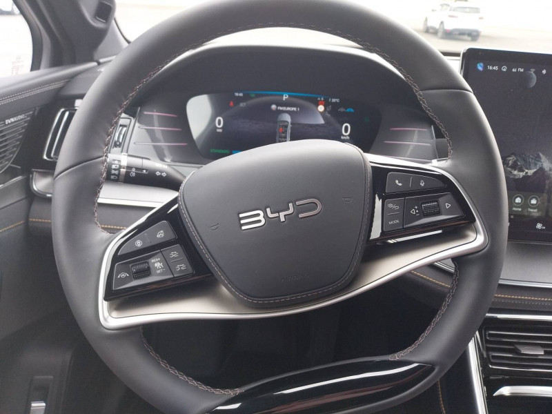 x One-click lift window, anti-pinch / Shark fin antenna / Smartphone wireless charging, 50W / Suede leather decoration dashboard / Three rows of seats 2+3+2 / Traction Control System (TCS) / Traffic Jam Pilot (TJP) / Traffic Sign Recognition (TSR) / Tri-zone climate control / Tyre Pressure Monitoring System (TPMS) / Vehicle Dynamics Control (VDC) / Vehicle-to-Load (V2L) function / 11kW On-Board Charger (OBC) / 12,3 " TFT full LCD instrument panel / 12V power output / 15.6" Electrically rotatable touchscreen / 21" Bi-colour alloy wheels / 265/45 R21 tyres / 2 x Smart Key, 1 x NFC key / 360° caméra / Adaptive Cruise Control (ACC) & Intelligent Cruise Control (ICC) / Aluminium roof rail / Ambient lighting, multi-colour, rhythm-reactive / Anti-theft system / Auto-dimming rear view mirror / Auto Hold / Auto-lock system / Automatic Emergency Braking (AEB) / Battery protection board / Blind Spot Detection (BSD) / Boot light / Boot parcel shelf / Brake Override System (BOS) / Centre console light / Child Presence Detection (CPD) / Cloud service - BYD APP / Comfort parking / Controller Deceleration Parking (CDP) / Cornering light / DAB+ & FM / Door Opening Warning (DOW) / Driver Fatigue Management (DFM) / Driver's airbag / Driver seat, electrically adjustable, 8 ways, position memory / Driver seat, electric lumbar support, 4 ways / Driver seat, integrated headrest / Driver seat sun visor with make-up mirror and light / Driver seat, ventilated, heated, memorized adjustment, massage / Driving modes: Eco, Normal, Sport, Snow / Dynamic turn signal light / Dynamic welcome light / Dynaudio sound system, 12 speakers / Electric Parking Brake (EPB) / Electric pre-tensioned and height adjustable front seat belts / Electric tailgate / Electronic Brake Distribution (EBD) / Emergency Brake Signal System (EBSS) / Emergency call / Emergency Lane Keeping Assist (ELKA) / Exterior mirror footlights / Exterior mirrors, electrically adjustable, electrically folding, heated / Follow me home (The headlights turned on in advance/delayed off function) / Forward Collision Warning (FCW) / Front and rear side airbags / Front and Rear USB ports, 1x 18W Type A, 1x 60W Type C / Front armrest box USB ports, 2x 18W, Type A / Front centre airbag / Front centre armrest, 2 cupholders / Front Cross Traffic Alert (FCTA) & Front Cross Traffic Brake (FCTB) / Front passenger's airbag / Front passenger's airbag, deactivation switch / Front passenger seat, electrically adjustable, 6 ways / Front passenger seat, electric lumbar support, 4 ways / Front passenger seat, integrated headrest / Front passenger seat, sun visor with make-up mirror and light / Front passenger seat, ventilated, heated, massage / Front seat footlights / Front windscreen, rain-sensing wipers / Roof liner, black fabric / Front windscreen, UV protection, thermal insulation, soundproofing / Glove box light / Head-up Display (HUD) / Heat pump / High Beam Assist (HMA) / Hill Decent Control (HDC) / Hill Hold Control (HHC) / Hydraulic Boost Brake (HBB) / Hydraulic Brake Assist (HBA) / In-car camera / Intelligent Power Brake (IPB) / Intelligent Speed Limit Control (ISLC) / Intelligent voice control - "Hi, BYD" / ISOFIX and i-Size, front passenger and outer rear seats / ISOFIX, outer rear seats / Lane Centring Control (LCC) / Lane Departure Assistant (LDA) / Lane Departure Warning (LDW) / Lane Keeping Assistant (LKA) / LCD rear control panel / Leather, multi-function steering wheel, heated / LED charging indicator / LED daytime running lights / LED four door lights / LED front reading lights / LED headlights, automatic on/off / LED rear side reading lights / LED taillights / Left curtain airbags / Mechanical child safety lock / Middle seats,4:6 folding & laying down / Middle seats, manual adjustable seat, 2 ways / Navigation / Negative-ion generator / Onboard 4G connectivity / Opening & closing by kicking action / Organ-style accelerator pedal / Panoramic sunroof, anti-pinch, electrically adjustable sunshade / Parking radars, front and rear / PM 2,5 air purification system / PM 2,5 filter / Premium NAPPA leather seats / Pre-tensioned & force limiter front seat belts / Pre-tensioned rear seat belts / Rear air conditioner control panel / Rear air vents / Rear armrest, 2 cupholders / Rear Collision Warning (RCW) / Rear Cross Traffic Alert (RCTA) & Rear Cross Traffic Brake (RCTB) / Rear fog lights / Rear row seats: manually adjustable headrest height / Rear seats, manually adjustable headrest / Rear windows and rear windscreen, privacy glass / Right curtain airbags / Rollover Control System (RMI) / Roof glasses case / / Modèles équivalents : Tesla Model X - Mercedes EQE
