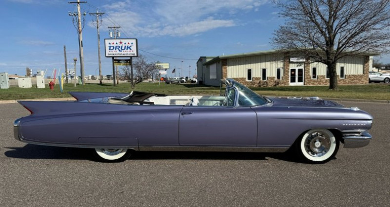 Le véhicule en question est un Cadillac Eldorado Biarritz Convertible de 1960, à l'état général excellent, présenté ici. Sa carrosserie est revêtue d'un chromage soigné et habillée d'un délicieux Heather Iridescent, tandis que son intérieur est recouvert d'un cuir blanc impeccable. L'automobile est dotée d'un moteur V8 de 390 cu. in. et d'une transmission automatique à 3 vitesses. Le kilométrage affiché est de 45 650. Cette Eldorado Biarritz dispose également de sièges électriques fonctionnant parfaitement, de fenêtres électriques, de radio, d'antenne électrique, d'horloge et de ventilateur fonctionnants, ainsi qu'un toit convertible en parfait état. Les phares sont également fonctionnels. Cet Eldorado Biarritz est une rareté, idéale pour des promenades, des expositions de voitures ou la collection. La carte d'immatriculation est propre.. Ce descriptif est basé sur les éléments communiqués par le propriétaire avec un traitement assisté. Merci pour votre indulgence en cas de formulation perfectible. Provenance : Minnesota. Disponibilité : 7 semaines, clés en main. 130 000 € tout compris (importation, taxes, procédure d'immatriculation). Annonce publiée le 18/11/2025