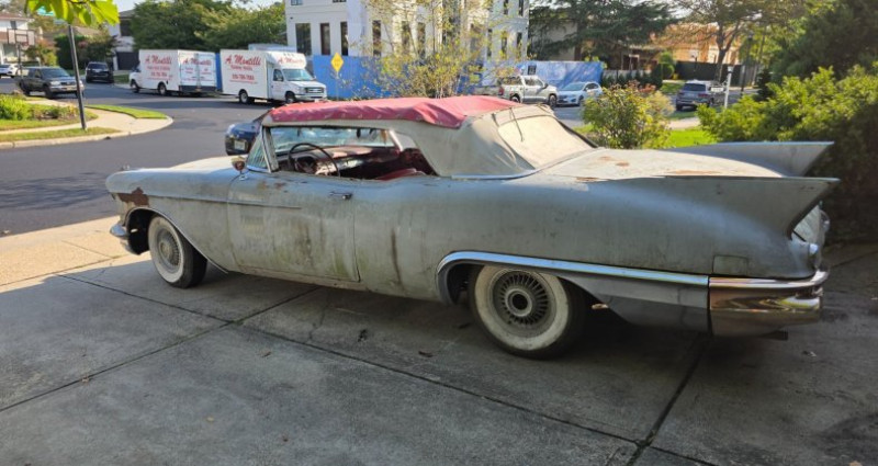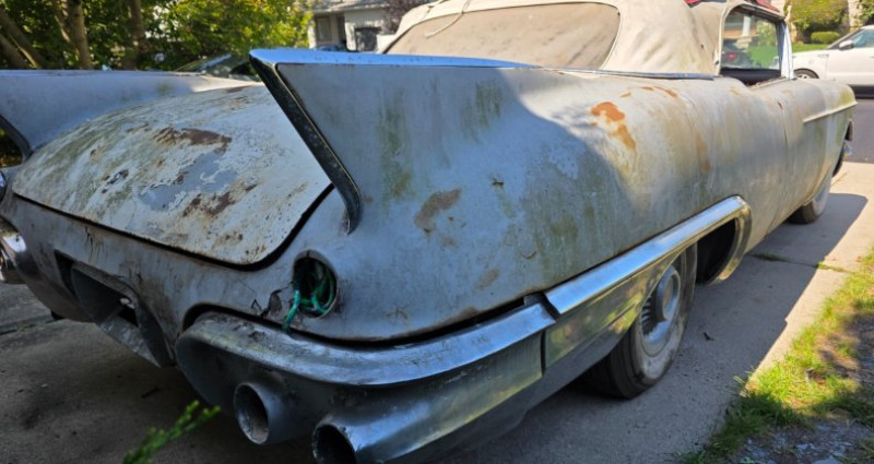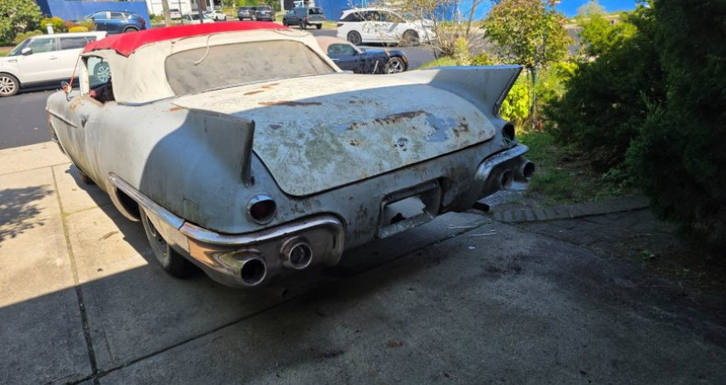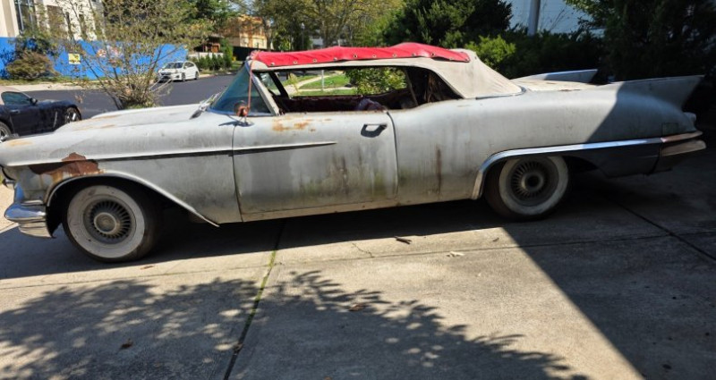 Ce 1957 Eldorado Biarritz est équipé d'un moteur V8 à doubles quadruples carburateurs, avec un intérieur actuellement rouge et blanc, mais originellement noir et blanc. Le bloc moteur correspond à l'original et a été reconstruit par Racing Machine Service. Le véhicule se trouve en bon état général, bien qu'il ait besoin de lignes d'essence, travaux de finition de frein et des carbureurs remis à neuf, ainsi que des travaux d'électricité supplémentaires (lampes et composants électriques déconnectés). Le tableau de bord est complet et le plancher est solide, mais le pare-brise du capot et la barre de fermeture du capot sont manquants. Le siège avant a quelques taches endommagées et le vitrage latéral a des têtes de verre neuves à la verte teinture. Les freins arrière sont partiellement remplacés et le reste du véhicule est présent dans un état relativement complet. Il manque un remousseur de porte de la porte arrière gauche. Le kilométrage n'est pas connu. Il est à noter que l'acquisition du véhicule se fera par transfert bancaire clairément débité d'une succursale bancaire des États-Unis.. Ce descriptif est basé sur les éléments communiqués par le propriétaire avec un traitement assisté. Merci pour votre indulgence en cas de formulation perfectible. Provenance : New York. Disponibilité : 7 semaines, clés en main. 36 500 € tout compris (importation, taxes, procédure d'immatriculation). Annonce publiée le 18/11/2025