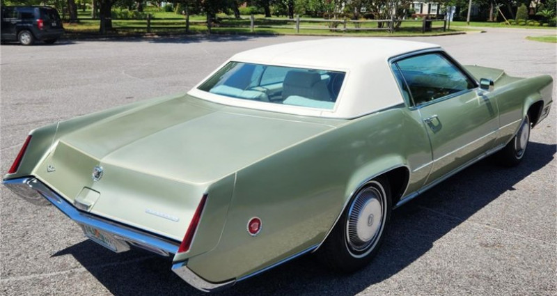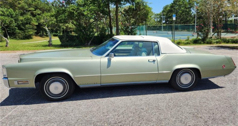 1970 Cadillac Eldorado, 500ci V8, 400 HP, 550 lb-ft Torque, 10:1 Compression Ratio, Four-Barrel Carburetor, Three-Speed Turbo Hydra-matic Automatic, Lanai Green paint, White vinyl top, White leather interior, Power bench seat, Woodgrain trim, Air conditioning, Power locks, Power windows, Power steering, Tilt and telescopic steering column, 15-inch steel wheels, Cadillac wheel covers, Hankook whitewall radial tires, New tires 2019, 2, 500 miles, AC Delco Battery 2 years old, Garage kept, Sunroof, Sentinel on-and-off headlights, Dual chrome side mirrors, Chrome brightwork, R134a air conditioning, Clock, 120-mph speedometer, Fuel gauge, Rear shocks replaced 2022, Front shocks replaced 2017, Four-wheel power disc brakes, Single-exit exhaust system, Rear and front shocks replaced, Power four-wheel disc brakes, Factory AM/FM stereo, Trim tag decoder Style - 69347, Plant - EUC, Trim - 452, Paint - 42 J, White leather upholstery, White vinyl top, Known Imperfections - Free from any substantial imperfections. Provenance : Florida, USA. Disponibilité : environ 7 semaines, clés en main. 33 000 € tout compris (import, taxes, procédure d'immatriculation). Annonce publiée le 26/11/2025