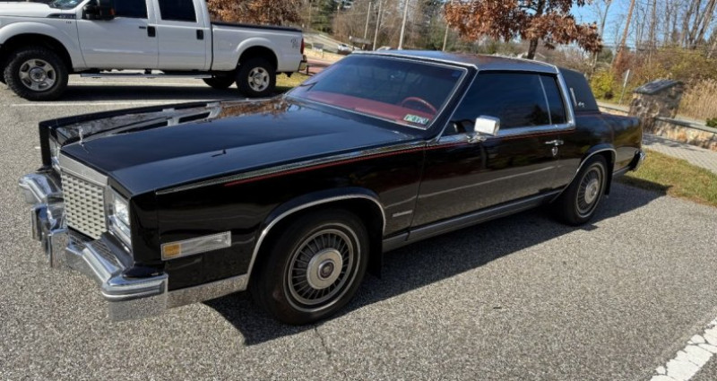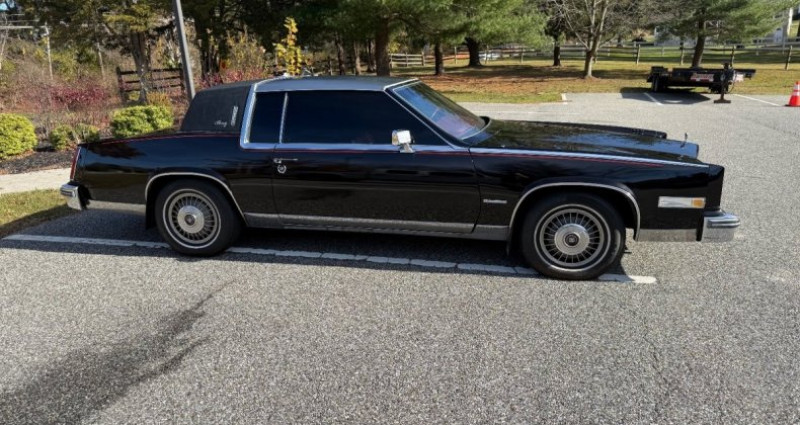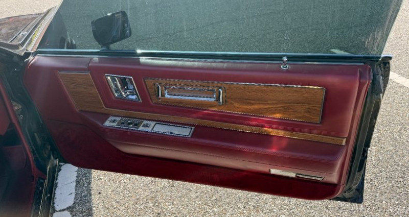 1981 Eldorado Biarritz • Model 6EL57 • Eldorado Biarritz Coupe • EBC19 Sable Black Metallic F Red Accent Stripe • K Black Tuxedo Grain Padded Roof • 743 Dk Carmine Leather • EBCL62 6.0L V8 Cadillac Motor Division • K49 Modulated Engine • Std. Soft Ray Glass • Std. Automatic Climate Control • Std. Power door locks & windows • Std. Power disc brakes - front & rear • Std. Soft Ray Glass • Std. Lamp & low W/S Washer fluid monitor • Std. Litter container • Std. Mirror - Remote driver side • Std. 6-Way Driver Power Seat • Std. Radio - AM/FM (RetroSound RetroRadio AM/FM receiver with aux input and Bluetooth) • Std. Power Antenna - Rebuilt 04/25 • Std. White wall steel belted radial tires - New • Std. Spare tire cover • Opt. Eldorado Biarritz Option • Opt. Leather interior • Opt. Padded roof B Eldorado Biarritz O Metal brushed finish stainless steel roof panel • W Dual Comfort Seat 50/50V 6-Way Passenger Power Seat 3 Recliner 50/50 seat, driver - Very Rare • 4 Recliner 50/50 seat, passenger • X Front license mount L Automatic level control • D Door Guards B93 Q Tilt & Telescope steering wheel N37 • T Trunk lock A90 F Front carpeted floor mats B32 R Rear carpeted floor mats B33 I Trunk mat B36 J Twilight Sentinel T82 N Rear window defogger, electric • C49 C Cruise control • K30 U Guide-matic headlight control • T80 E Remote right outside mirror DF3 G Illuminated vanity mirror D64 K Control cycle wiper system • CD4 Z Illuminated entry system • C97AC Electronic fuel injections • KF3AM Aluminum Wheels - Very Rare and in Great Condition • AN Automatic door locks • AU4AP Theft deterrent system UA6AQ Fuel Monitor UR1AR Chrome Accent Moulding • AS Opera lamps C93AT Outside mirror w/ thermometer (LH) • D66AW Electronic level control • G67AZ License frame (Ft/Rr) • V51A1 Radio, AM/FM stereo w/ 8 track tape • UM2BC Engine block heater • VG7BF Heavy duty cooling system • VO1BG Trailering package • YM7BJ Trip computer • DE9 Console (was an 81 only option). Provenance : Pennsylvania. Disponibilité : environ 7 semaines, clés en main. 22 500 € tout compris (importation, taxes, procédure d'immatriculation). Annonce publiée le 30/11/2025