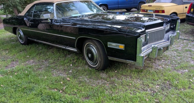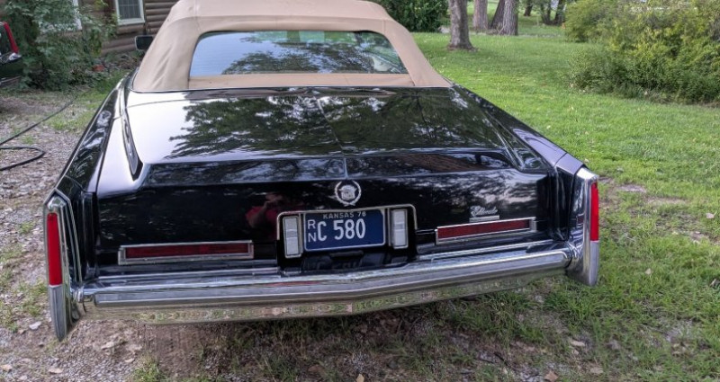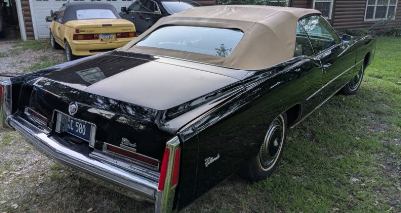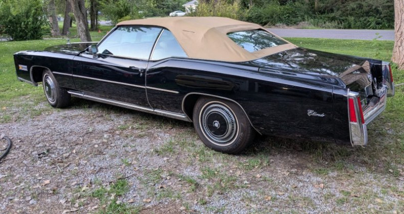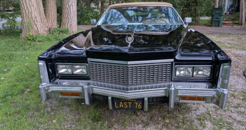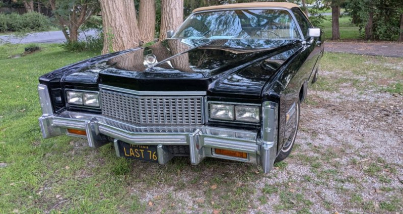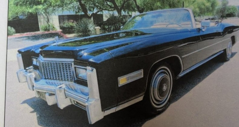 Châssis Cadillac Eldorado, année 1976, version Cabriolet. Carrosserie noire. Intérieur cuir brun. Capot et ailes noires. Freins assistés. Jauge à carburant. Coffre. Direction assistée. 46 390 miles. Petite déchirure sur le toit cabriolet.. Provenance : Kansas. Disponibilité : environ 7 semaines, clés en main. 32 000 € tout compris (importation, taxes, procédure d'immatriculation). Annonce publiée le 01/12/2025