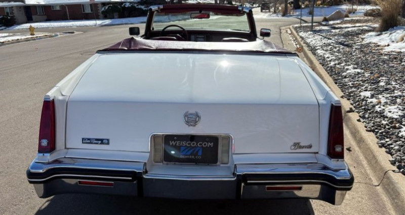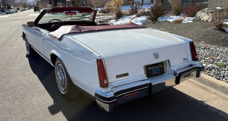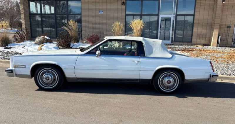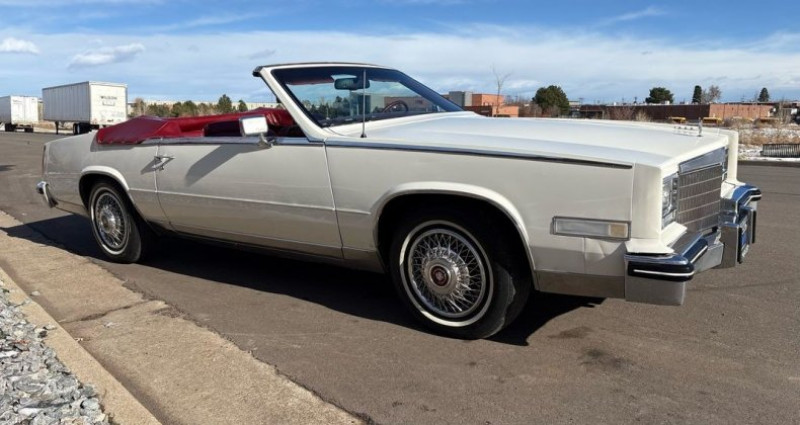 - Marque : Cadillac - Modèle : Eldorado Biarritz - Année : 1985 - Couleur extérieure : Blanc - Couleur intérieure : Rouge - Type de carrosserie : Cabriolet - Transmission : Automatique à 4 vitesses - Type de carburant : Essence - Moteur : V8 de 4, 1L - Kilométrage : 73 093 - État général : Très bon état - Travaux : Peinture sur le panneau arrière gauche - Équipements : Radio avec Bluetooth et lecteur CD, Antenne radio, Jantes chromées avec pneumatiques blancs à rayons, Siège cuir rouge en bon état. Provenance : Colorado. Disponibilité : environ 7 semaines, clés en main. 22 500 € tout compris (importation, taxes, procédure d'immatriculation). Annonce publiée le 23/12/2025