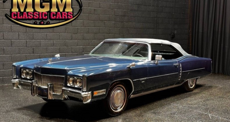 - Marque : Cadillac - Modèle : Eldorado 500 - Année : 1971 - Carrosserie : Convertible - Couleur extérieure : Bleu - Couleur intérieure : Bleu - Transmission : Automatique - Moteur : V8, 8.0L - Kilométrage : 84, 497 miles - Titré et plaqué en Californie. Provenance : Illinois. Disponibilité : environ 7 semaines, clés en main. 26 000 € tout compris (importation, taxes, procédure d'immatriculation). Annonce publiée le 03/01/2026