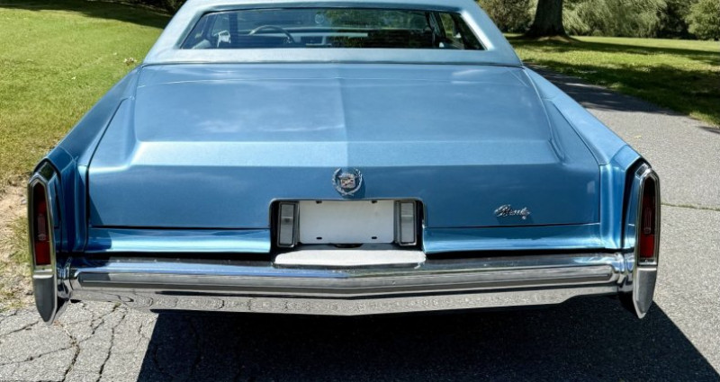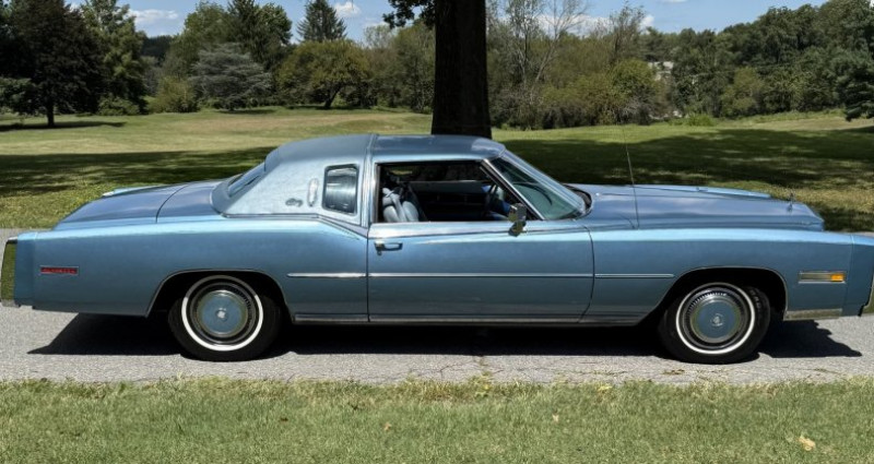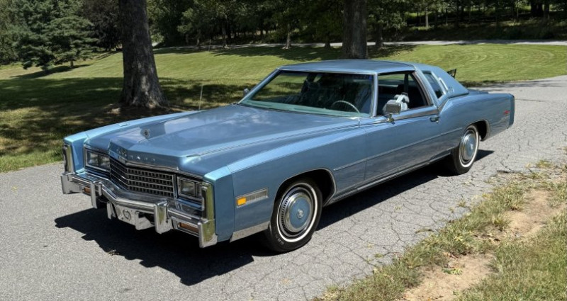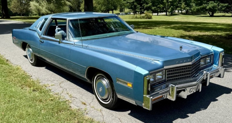 - Marque : Cadillac - Modèle : Eldorado Biarritz - Année : 1978 - Couleur : Mediterranean Blue Firemist - Intérieur : Cuir plush, tapisserie originale, volant, tableau de bord et revêtement de plastique - Propriétaire unique - Kilométrage : Données non mentionnées (en miles) - Options : Climatisation, radio 8-tracks, régulateur de vitesse, sièges électriques à 8 voies, fenêtres électriques, verrouillage électrique, volant réglable en hauteur et en profondeur, suspension air ride, freins à disques sur les 4 roues - Moteur : V8 de 425 ci - Transmission : Automatique - Roues : Jantes colorées à revêtement de roue originales, pneus blancs radiaux - État : Bien conservé, peu utilisé, stocké correctement. Provenance : Maryland. Disponibilité : environ 7 semaines, clés en main. 23 000 € tout compris (importation, taxes, procédure d'immatriculation). Annonce publiée le 03/01/2026