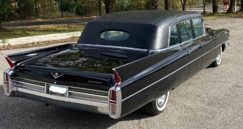 Ce véhicule est un cadillac 75 Series Fleetwood Formal Limousine de 1963, doté d'un divisoire de fenêtre et d'un toit en vinyle de bonne qualité, avec seulement 86 000 milles. Cette limousine formelle est en très bon état général, avec une carrosserie magnifique et de la peinture et du chrome impeccables. Le corps est solide et sa mécanique est en parfait état, grâce à un entretien et un stockage soignés tout au long des années. La voiture présente un intérieur magnifique, avec un tableau de bord original sans défectuosité. Elle est également équipée d'éclairages funéraires d'urgence fonctionnels. Il est important de noter que le véhicule est actuellement stocké à la maison de son propriétaire, et non à Cadillac, dans le Michigan.. Provenance : , USA. Disponibilité : 7 semaines, clés en main. 46 600 € tout compris (import, taxes, procédure d'immatriculation).  Annonce publiée le 12/07/2025
