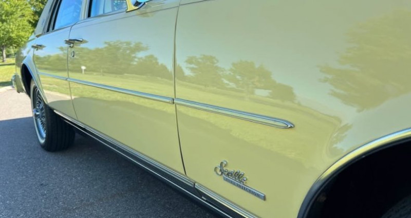 1978 Cadillac Seville, Colonial Yellow, 27, 000 miles, new paint (2013), hand painted accents, nice body, excellent chrome, AC, tilt/telescoping steering wheel, cruise, Twilight Sentinel, electric antenna, electric trunk, AM/FM with 8-track tape, factory installed CB unit, new tires wire wheels, wire wheels.. Provenance : Michigan. Disponibilité : environ 7 semaines, clés en main. 31 000 € tout compris (importation, taxes, procédure d'immatriculation). Annonce publiée le 30/11/2025