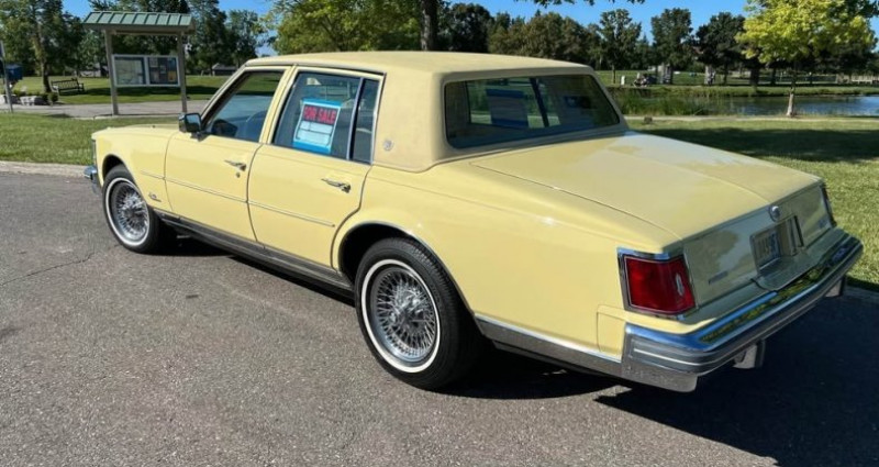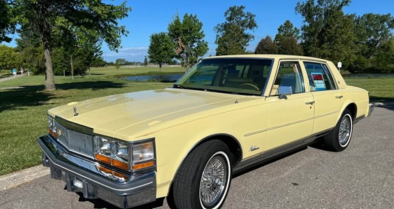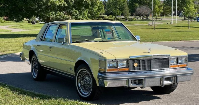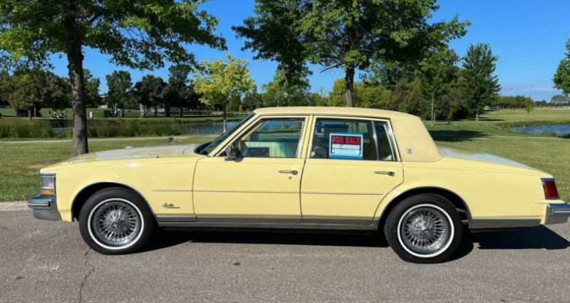 - Couleur : Jaune colonial - Année : 1978 - Marque : Cadillac - Modèle : Seville - Kilométrage : 27 000 miles - Vieillessence : Partie de la collection d'un multimillionnaire de la restauration rapide à Luflin, Texas - Travaux : Nouveau badgeage à plus de 7000 $ en 2013 - État du corps : Bon avec chrome excellent - Équipements : Climatisation, volant réglable en hauteur/en largeur, régulateur de vitesse, Twilight Sentinel, antenne électrique, coffre électrique, radio AM/FM avec lecteur 8-tracks et un CB unit factory installé - État général : Non parfait mais très présentable pour un Seville de 46 ans. Provenance : Michigan. Disponibilité : environ 7 semaines, clés en main. 30 500 € tout compris (importation, taxes, procédure d'immatriculation). Annonce publiée le 10/12/2025