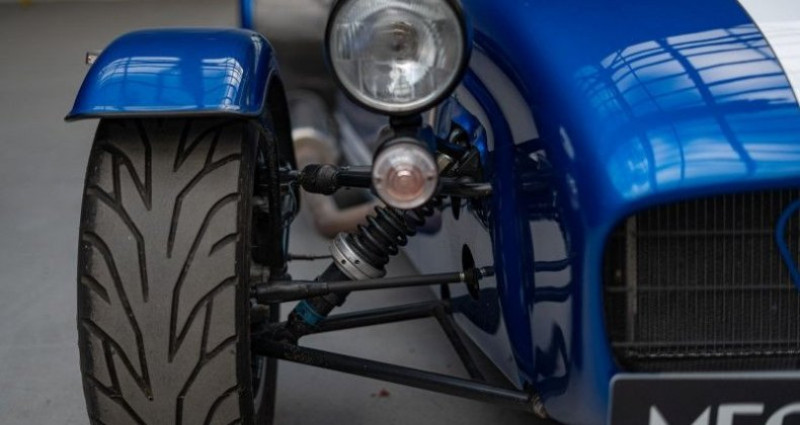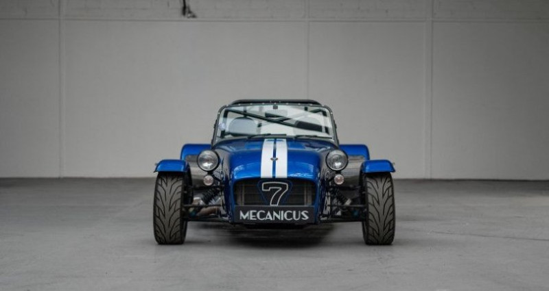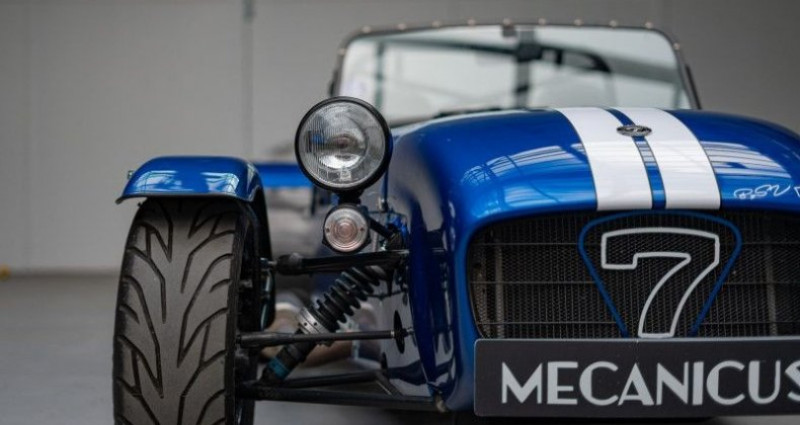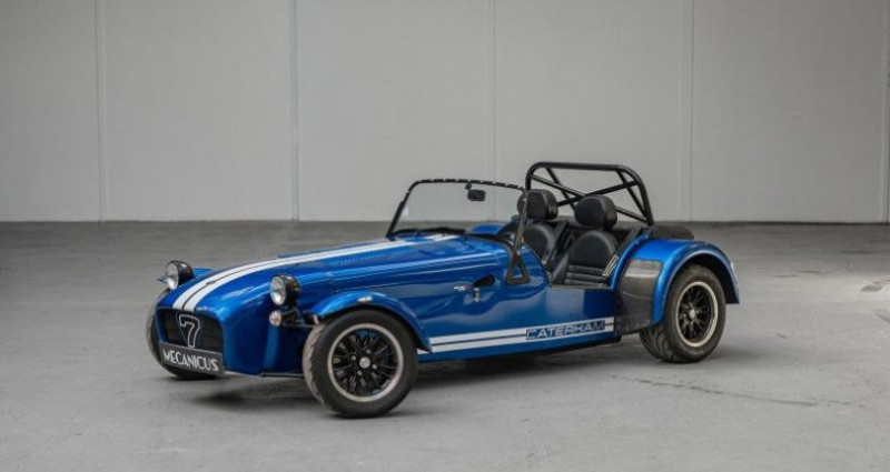 Caterham 275R SV *Origine France / 2ème main / Viper Blue métallisé*, (Cabriolet), BLEU, 8cv, 2 portes, mise en circulation le 07-12-2020. 2 places, couleur intérieur : NOIR, longueur : 3,10 mètres, boîte de vitesse : manuelle OPTIONS ET EQUIPEMENTS : Kilométrage garanti. La Caterham 275R SV que nous vous proposons aujourd'hui est d'origine française et fût livrée en décembre 2020 par SV Automobiles, distributeur Caterham, à son premier propriétaire. Cet exemplaire sort du lot avec une configuration racée grâce à une peinture Caterham Exclusive Viper Blue métallisée. L'intérieur lui est revêtu du cuir effet carbone sur les sièges et le tunnel de transmission. Cette 275R associe un moteur Sigma 1.6L d'origine Ford à une boite de vitesse Mazda à 5 rapports. Une version désormais indisponible au catalogue de la firme de Dartford. Au-delà de sa configuration, cette 275R a été généreusement équipée lors de sa commande avec le Pack R fournissant un différentiel auto-bloquant, un volant moteur allégé et des suspensions réglables. Mais aussi l'arceau FIA, le volant Momo à méplat extractible, les harnais, le kit pluie et un kit intercom Stilo. Cet exemplaire est équipé du châssis SV, plus large, ainsi que du plancher rabaissé. Cette association offre une meilleure habitabilité avec plus de place à son bord, idéal pour les grands gabarits. La liste complète des options est disponible ci-dessous. Cette Caterham a connu deux propriétaires. Ces derniers l'ont tous deux faite entretenir chez SV Automobiles, nous disposons des factures d'entretien annuel. Le dernier en date vient d'être effectué en février 2026, elle comprenaitla vidange du moteur et de la boite de vitesse, le remplacement des bougies et le serrage des trains avant et arrière. Cette version 275 R, désormais arrêtée, dérivée de la mythique Lotus Seven est un produit de pur plaisir en voie d'extinction. Comme le disait Colin Chapman, light is right. Il ne vous reste plus qu'à le vérifier derrière son volant sur des cols de montagne ou sur circuit ! Equipement optionnel : Pack R : Sièges cuir vinyle effet carbone avec console centrale Pont à glissement limité Volant moteur allègé Suspensions ajustables Barre stabilisatrice arrière Tableau de bord en fibre de carbone Black pack (phares, trappe à essence, protection d'ailes et seuils carbone) Chassis SV Kit pluie (portes, capote ou demi-toit, pare-brise, moteur d'essuie glace, réservoir de lave glace) Planché rabaissé Intérieur moquette Jantes 14 pouces en aluminium Arceau FIA Pack décoratif Catheram blanc style R300 Bande fine noire ajoutée au pack décoratif Peinture Viper Blue métallisée Peinture de la grille 7 en blanc Volant extractible Coupe batterie Liste des entretiens : 12/2020 - Entretien - 10km - Caterham SV Automobiles 08/2021 - Entretien - 2397km - Caterham SV Automobiles 02/2023 - Entretien - 12807km - Caterham SV Automobiles 09/2024 - Entretien - 16878km - Caterham SV Automobiles 02/2026 - Entretien - 20212km - Caterham SV Automobiles Le véhicule est couvert par un contrat de garantie Triomphe Essentielle 6 mois avec plafond de 5 000€. Extension de durée (12 ou 24 mois) et/ou de plafond (10 000€ ou 20 000€) possible. L'auto est visible à Paris ou sur le site de Mecanicus pour plus de photos. Nos prix s'entendent TVA et malus inclus, le coût de la carte grise reste à la charge de l'acheteur. Reprise et financement possibles. L'équipe MECANICUS Référence annonce : 288