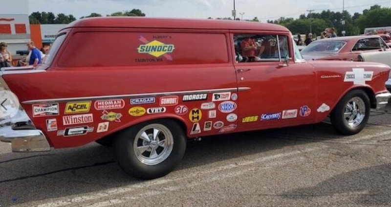 Le véhicule en question est un Chevrolet Sedan Delivery de 1957, doté d'une carrosserie rouge à l'ancienne et d'une intérieure grise personnalisée avec des accessoires en chrome. La voiture est équipée d'un moteur SBC de 355 CI à cylindres hélicoïdaux, muni d'une caméra hydraulique et d'une distribution MSD. L'embrayage est reconstruit avec des coussinets en acier et la boîte de vitesses est un Muncie à quatre vitesses, révisée avec un ensemble Hurst Competition Plus. L'avant est équipé de freins à disque et d'une suspension renforcée avec des bras de contrôle tubulaires supérieurs et inférieurs, des ressorts et des amortisseurs Calvert Racing. L'extérieur a été rénové avec de nombreux éléments en chrome et en acier inoxydable, y compris des rétroviseurs, des roquettes sur le capot et le pare-chocs, des tuyaux d'échappement aluminisés et des échappements Hedman HPC revêtus de nickel. Les roues sont des Cragar SS de 15 pouces avec des pneumatiques M&H Front Runners et Slicks sur les arrière. L'équipement standard comprend des instruments de direction, des clignotants, des feux de position, des avertisseurs sonores, des feux de garde-à-vue, un frein d'urgence et un ensemble de réglage de vitesse. La voiture a été en construction pendant deux ans et son état général est bon, bien qu'elle ne soit pas destinée à concours. De plus, il est possible d'acquérir d'autres pièces supplémentaires en plus du véhicule comme un ensemble Rochester FI UNIT issu d'un C1 en état de marche, des 2x4?s WCFB, un bloc 283 provenant d'un Corvette, un 3e différentiel à 4:88 Posi et un ensemble d'échappement préparé Stock Eliminator. Le prix de vente du véhicule seul est de 45 000 $.. Provenance : MA, USA. Disponibilité : 7 semaines, clés en main. 49 500 € tout compris (import, taxes, procédure d'immatriculation). Annonce publiée le 12/10/2025