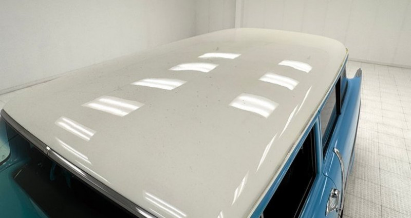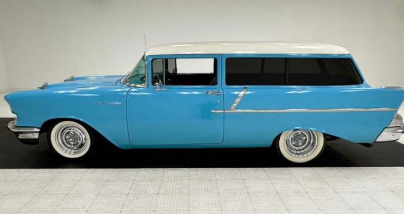 - Marque : Chevrolet - Modèle : 150 - Type de carrosserie : 2-porte Station Wagon - Année : 1957 - Couleurs : Larkspur Blue et India Ivory - Moteur : 350ci V8 - Boîte de vitesses : 700R4 4-vitesse automatique - Transmission : Rear axle, 3.36 gears - Équipements : A/C, direction assistée, freinage assisté, système d'injection Holley Sniper EFI, frein à disque avant, frein à tambour arrière, double échappement - État : Restauration ancienne, certaines imperfections (bulles de peinture, tint bubbling, chipping, spots de surface rust) - Kilométrage : Inconnu en raison d'un odomètre inopérant. Provenance : , USA. Disponibilité : environ 7 semaines, clés en main. 49 000 € tout compris (import, taxes, procédure d'immatriculation). Annonce publiée le 31/12/2025