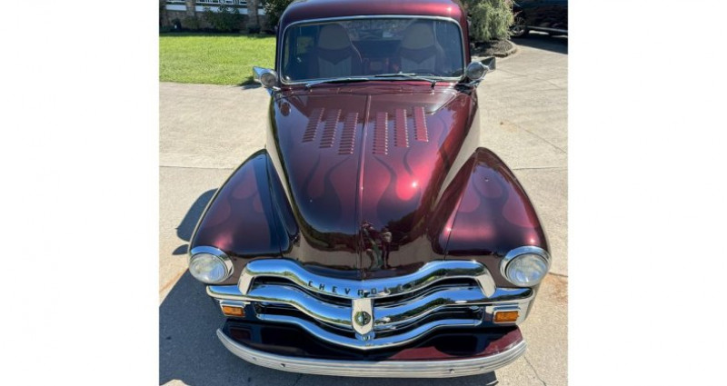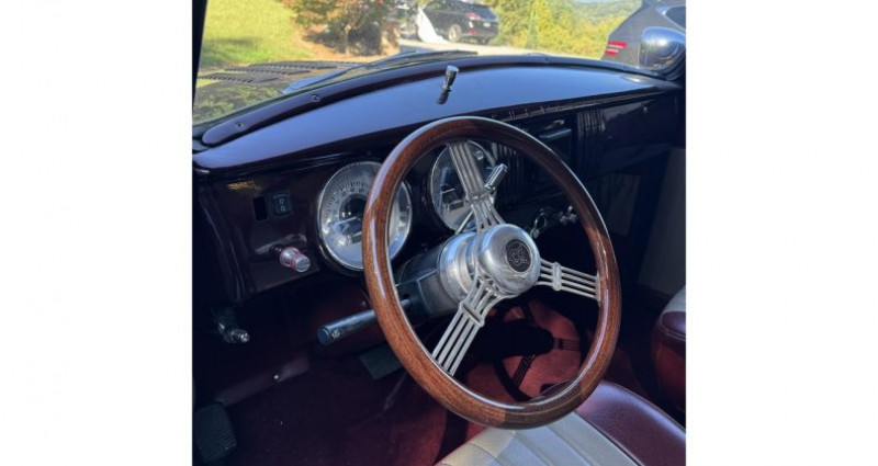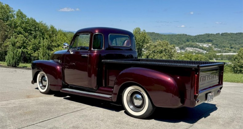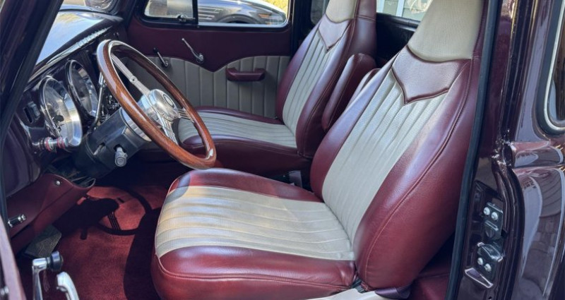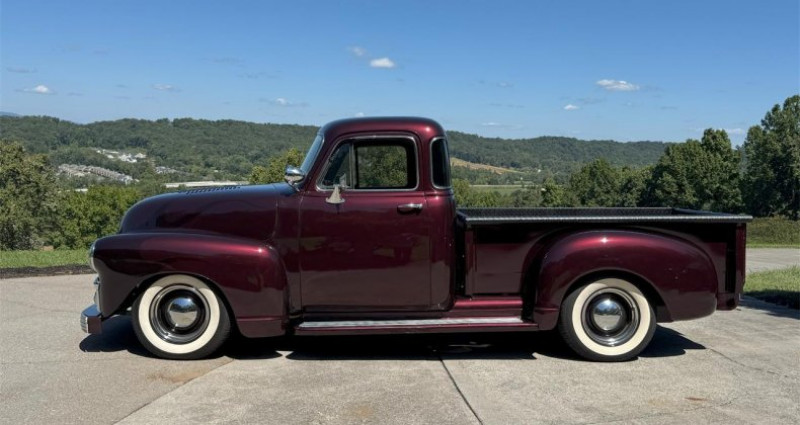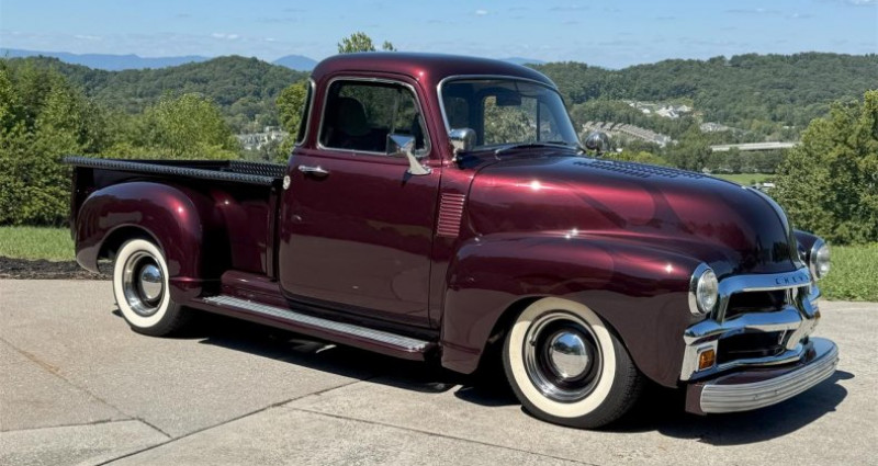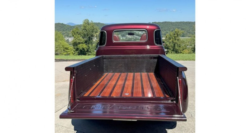 Le véhicule en question est un Chevrolet 3100 de 1954, équipé de fenêtres à 5 vitres, rénové avec une peinture professionnelle de haute brillance de couleur base Metallic Dark Cherry et d'éclats de flammes noires métalliques phantom. Le moteur est un Chevy 5.3L LM7 Vortec reconstruit, peint en Metallic Black Cherry, équipé d'une pompe à eau électrique, d'un cylindre de frein maître électrique et de climatisation de type Vintage Heat / Ac. Le véhicule a reçu un nouveau câblage pour le moteur et le châssis, ainsi qu'un châssis de cadre Scott's Hot Rod neuf, équipé d'un arrière Ford 9 et d'un rapport de transmission 3.31:1, avec freins à disques à quatre roues, un réservoir à essence en aluminium, également peint en Metallic Black Cherry. Le lit de chargement a été remplacé par du Rosewood exotique brillant de nouvelle production, avec des bandeaux métalliques peints et des côtés en diamant noir aluminium. L'intérieur a été équipé de siégeaux de type bucket de couleur Tan/Rouge et de moquette. La roue de direction est en teck et dispose d'un boîtier de contrôle électronique personnalisé, situé à l'arrière des sièges, pour les distributeurs, fuseaux et boîte de distribution, et achevé par un tableau de bord Dakota Digital. La boîte de vitesses automatique est un 4L60E et les feux sont LED. Le frein d'urgence est une marque d'Electric estopp.. Provenance : Tennessee, USA. Disponibilité : 7 semaines, clés en main. 58 000 € tout compris (import, taxes, procédure d'immatriculation). Annonce publiée le 01/10/2025